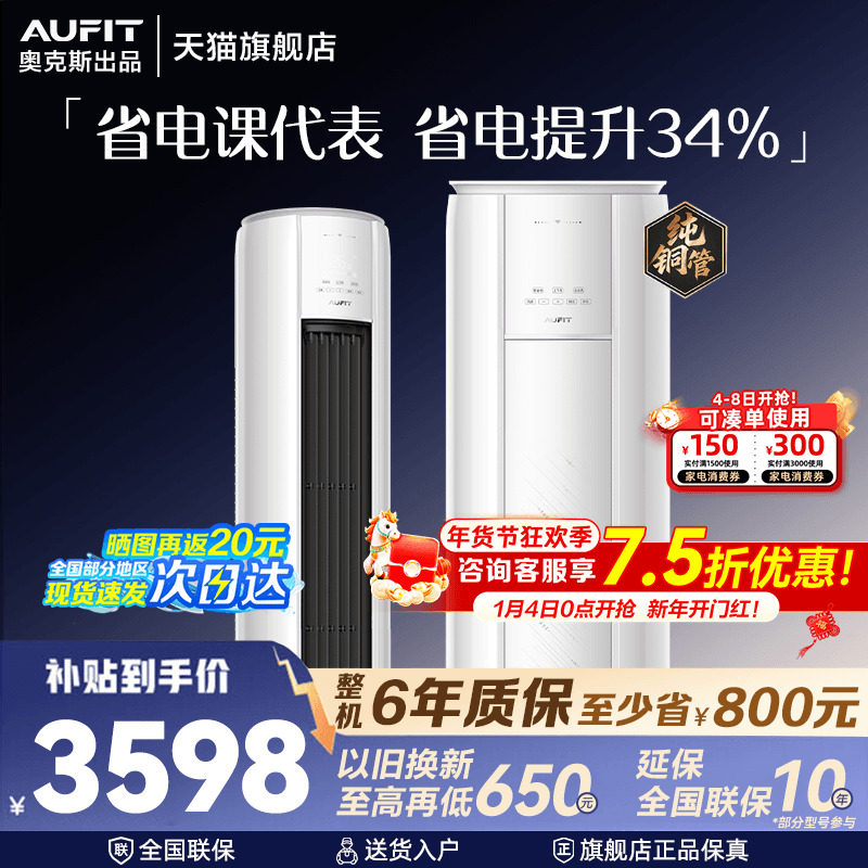 AUFIT空调奥克斯出品立式柜机大3匹超一级能效2p客厅家用旗舰店