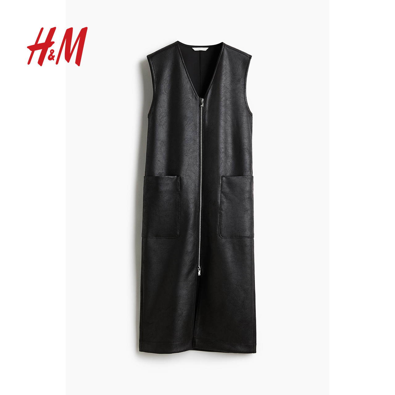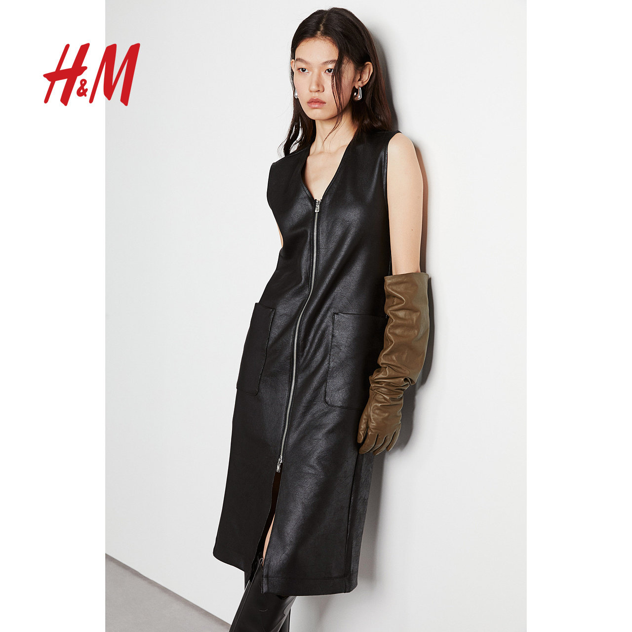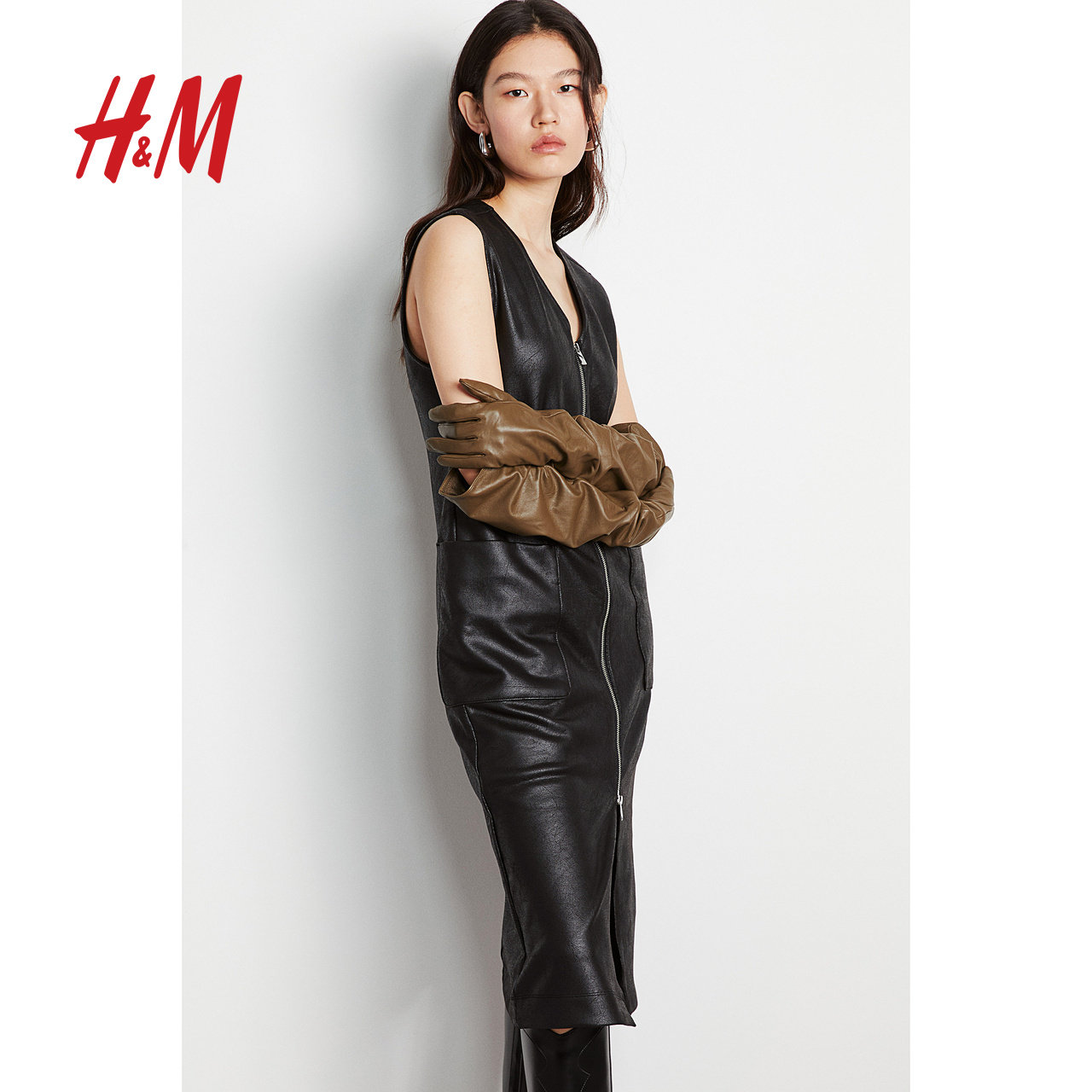 HM秋季女装时尚休闲休闲拉链前襟涂层面料连衣裙1268252