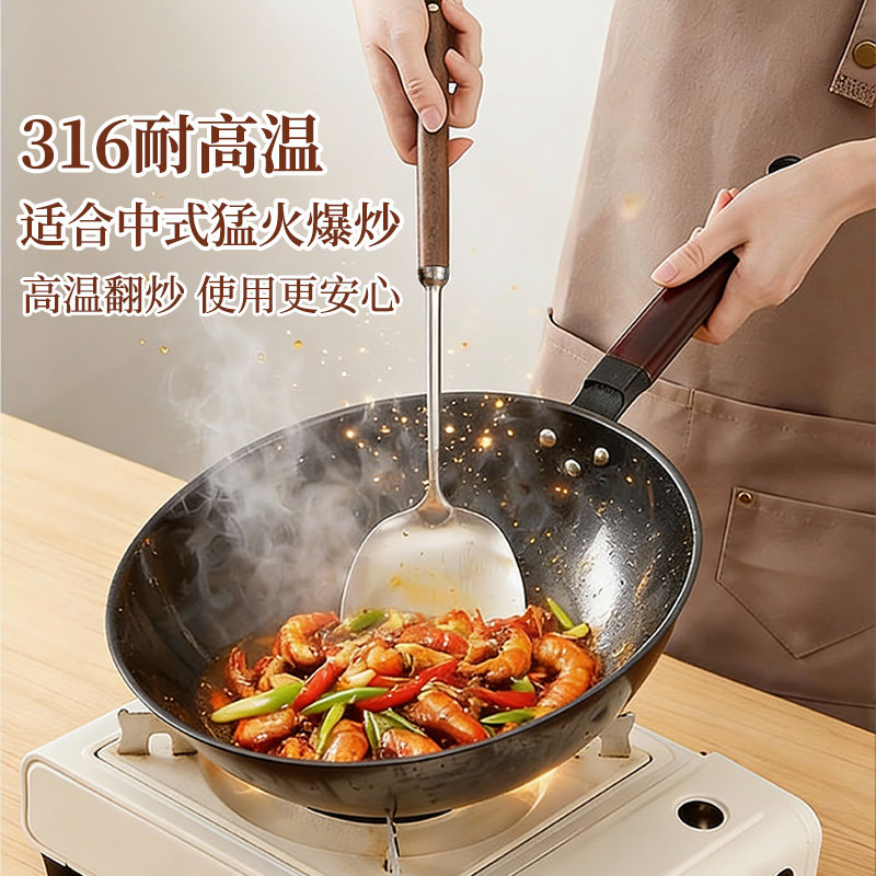 316不锈钢锅铲家用食品级木柄把汤勺漏勺厨