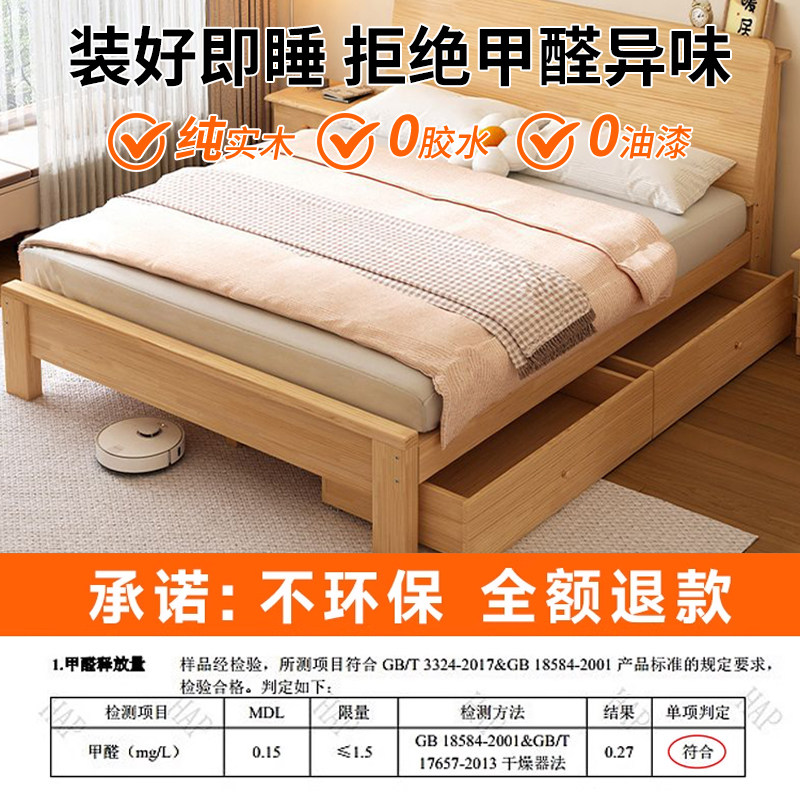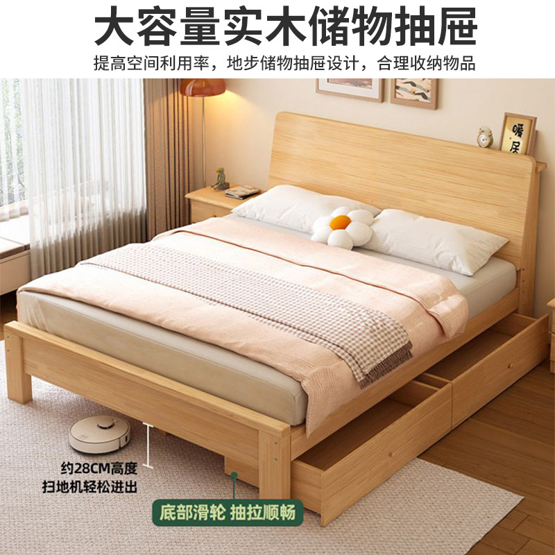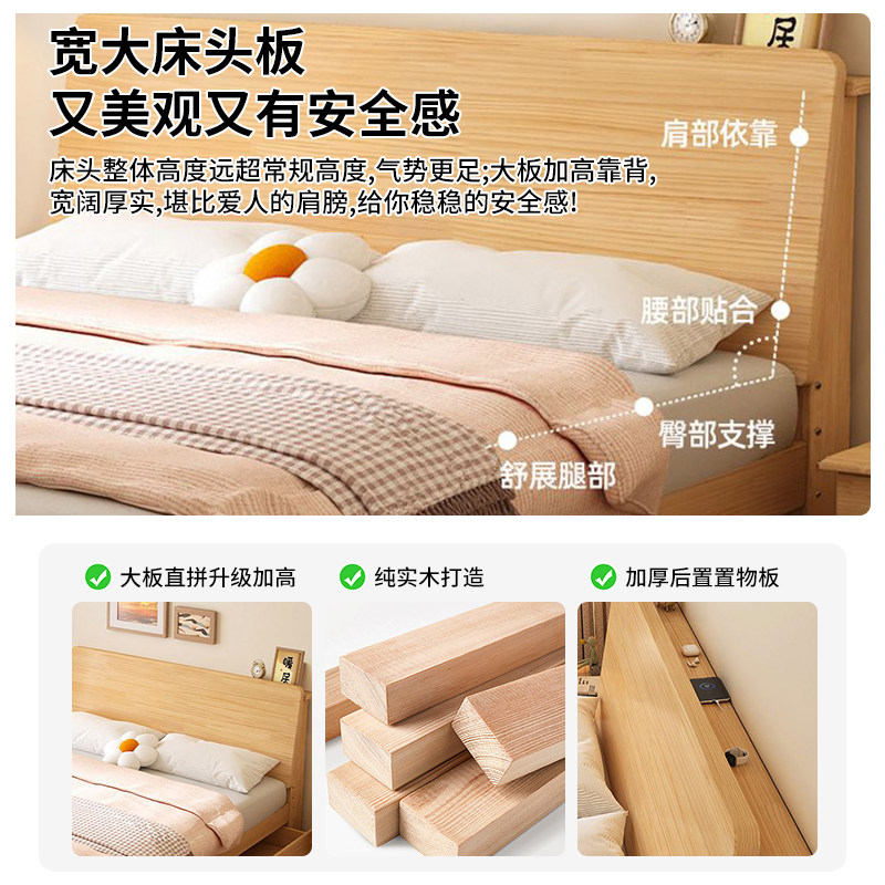 纯实木床原木风双人床家用卧室经济型单人床可储物大床出租房专用