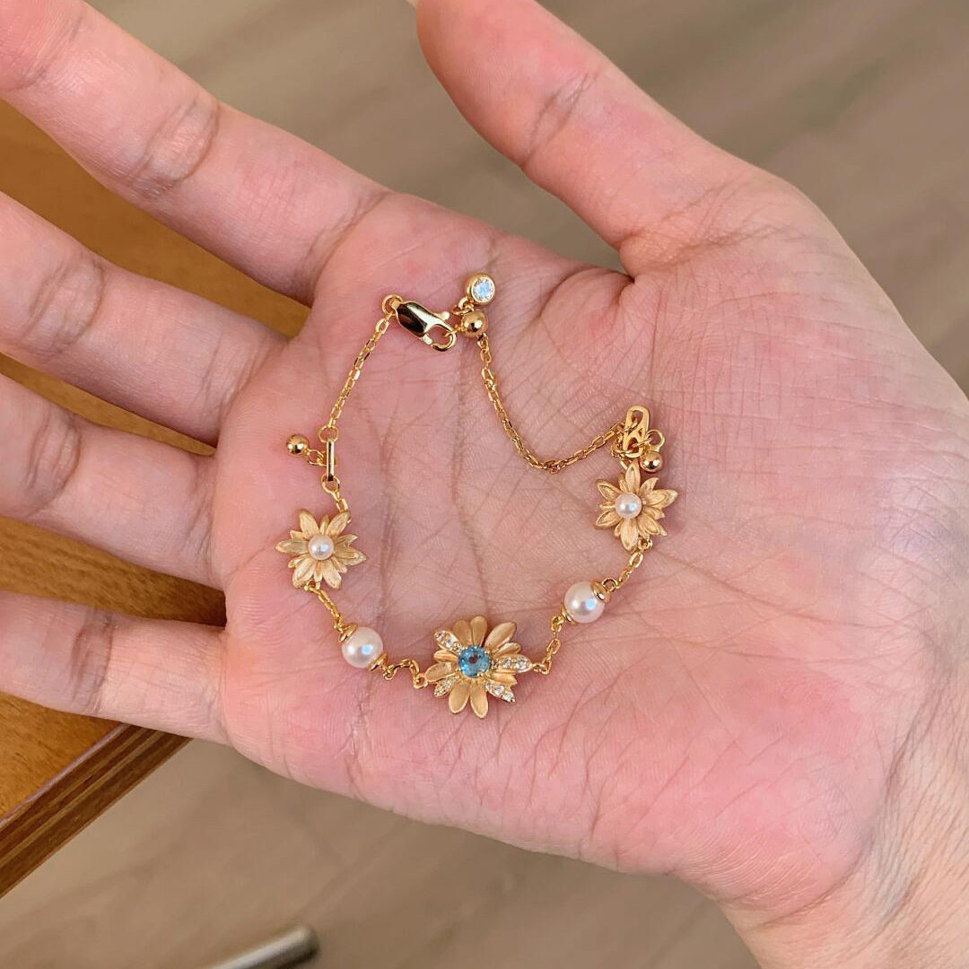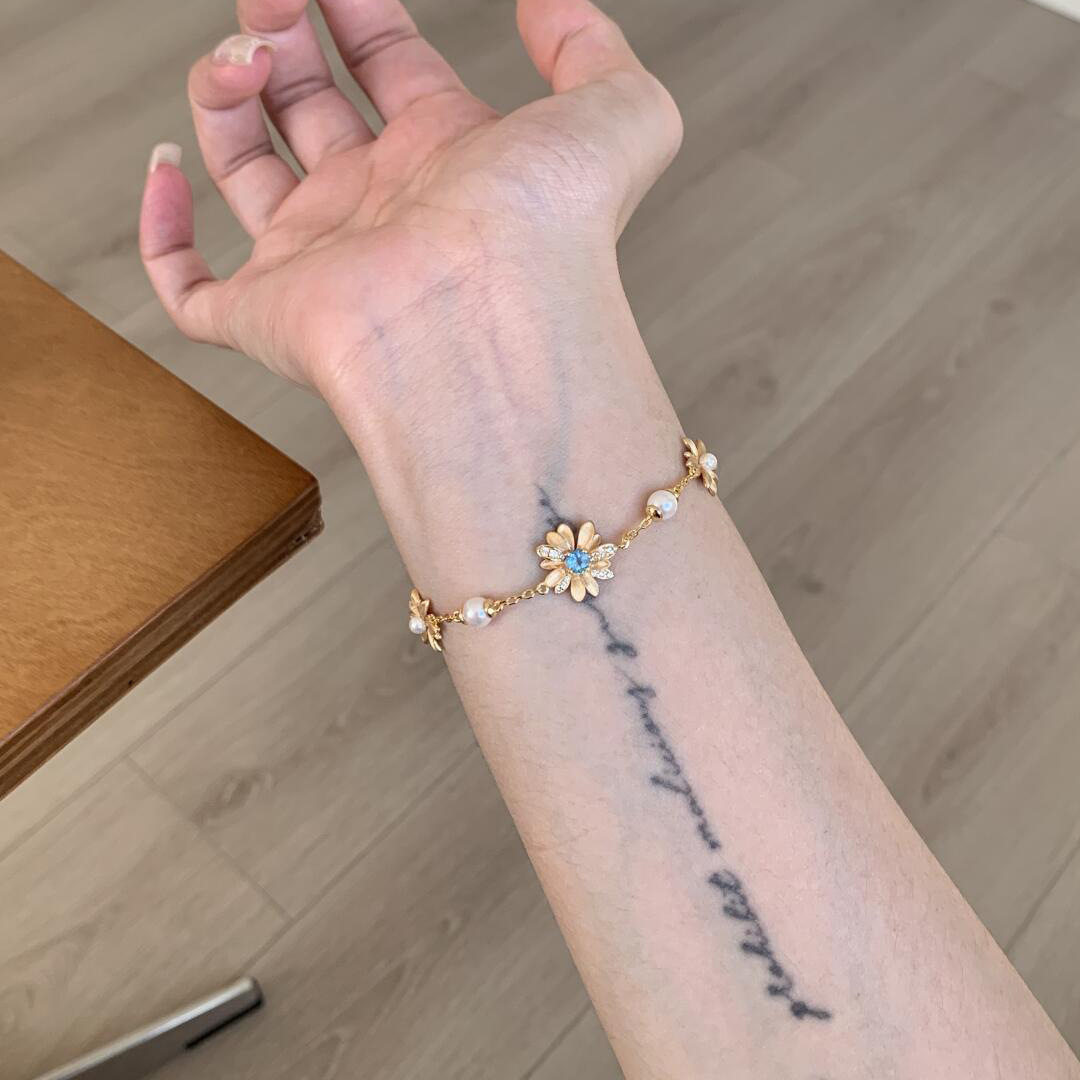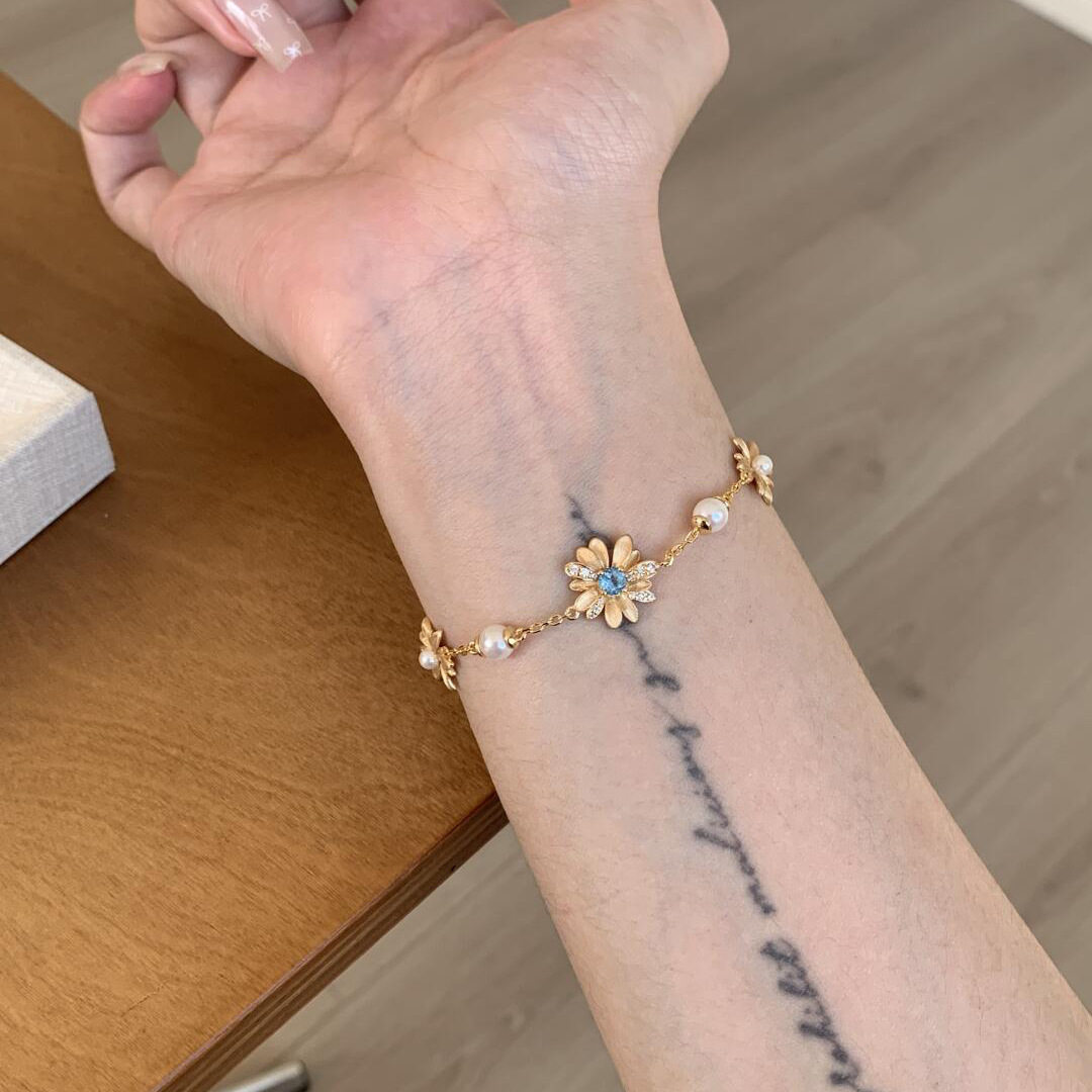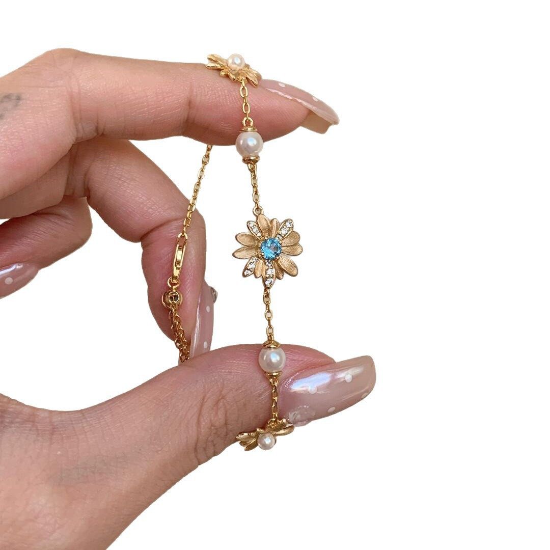 法式复古金色拉丝小雏菊珍珠手链时尚精致小众设计优雅高级感手饰