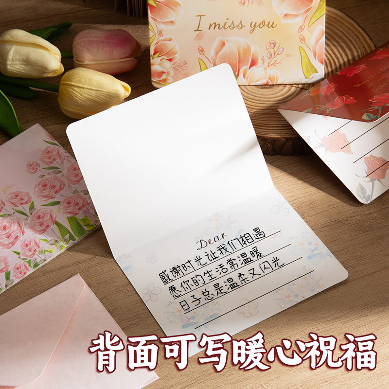 鲜花贺卡女生送男生高级感带信封结婚生日表白可代手写空白卡片祝福留言送男朋友送女友明信片高端精致仪式感