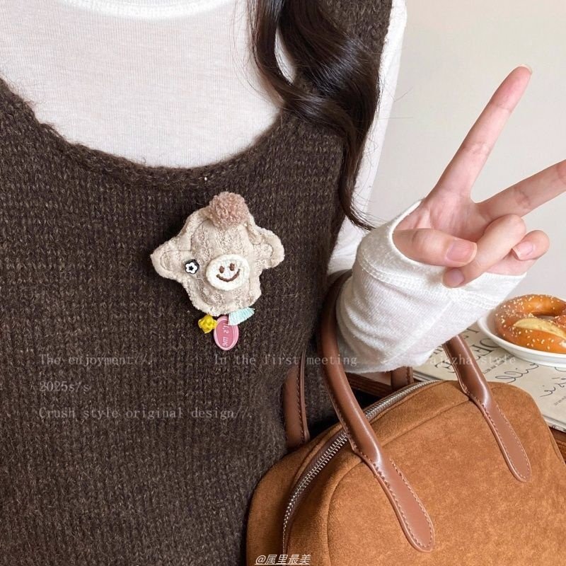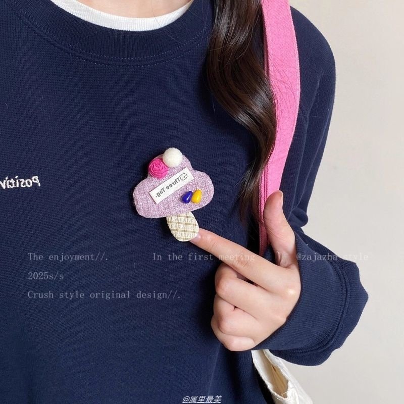 敲可爱~背包布艺蘑菇胸针女2025新款别针配饰设计感卡通挂饰点缀