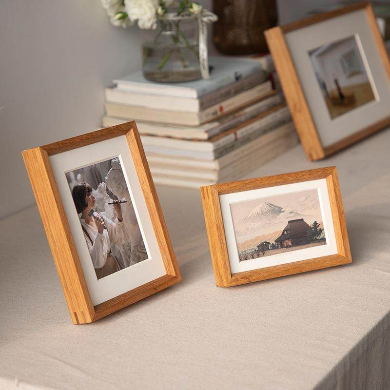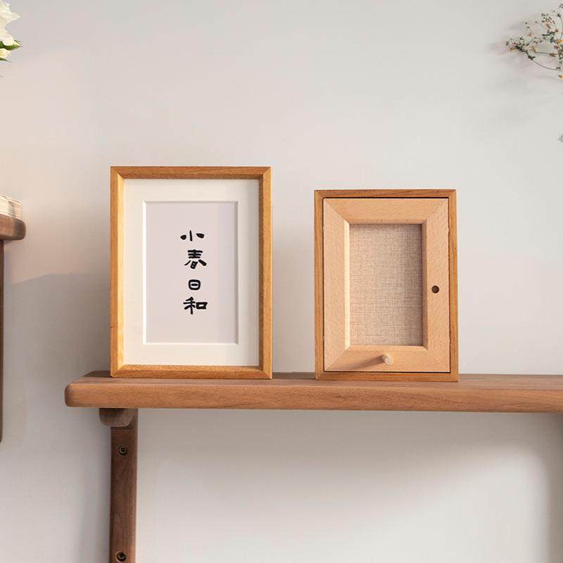 榫卯实木质相框书法字画框装裱6寸 7 10寸柚木色相框摆台加洗照片