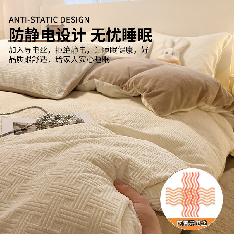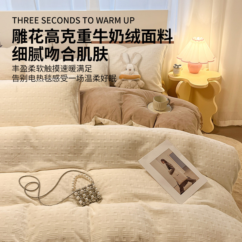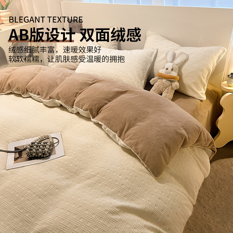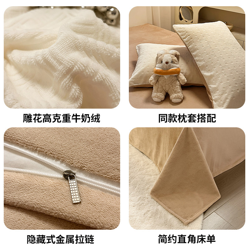 无印良品牛奶绒被套单件秋冬季珊瑚绒被罩加绒床单四件套加厚单人