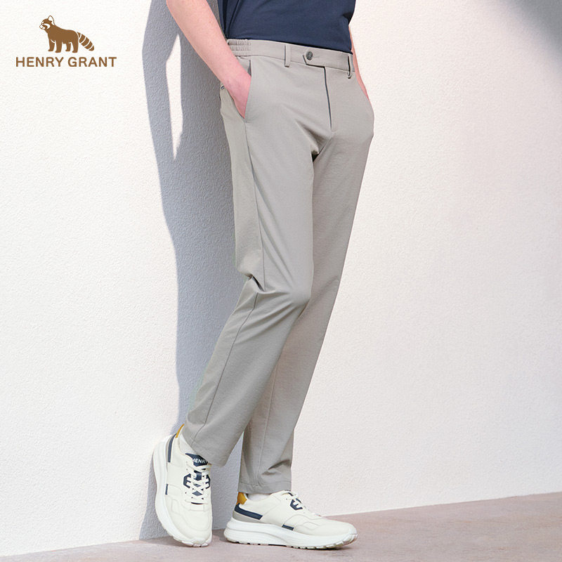 亨利格兰2025夏新品男商务休闲直筒垂感库松紧腰轻薄易打理通勤裤