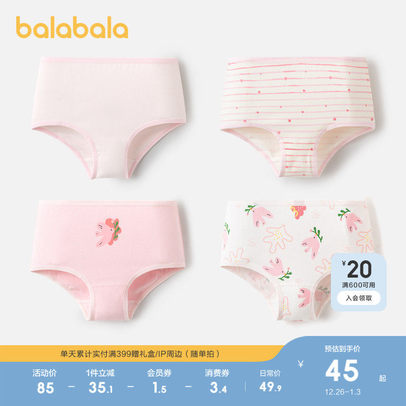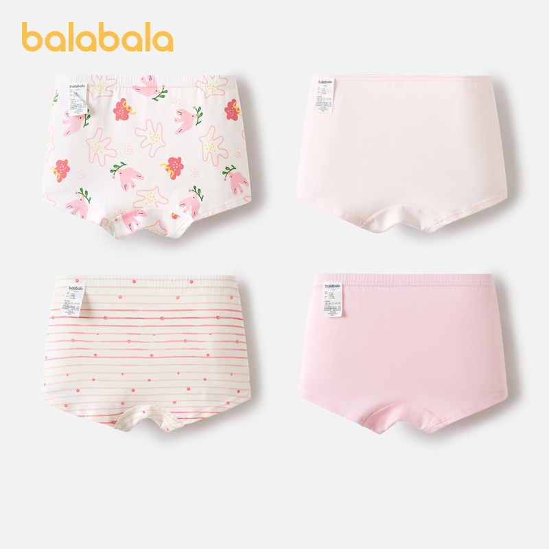 巴拉巴拉女童内裤棉a类儿童四角短裤小童宝宝不夹PP平角裤四条装