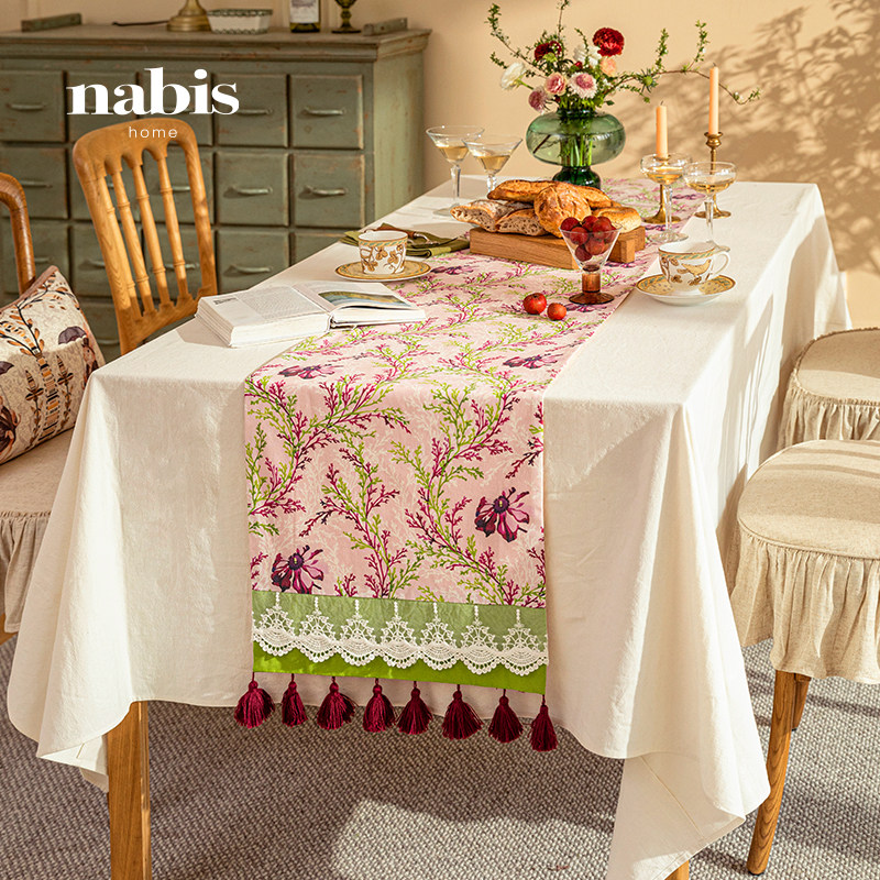 蜡笔派布查特桌旗蕾丝轻奢高端氛围感棉麻鞋柜斗柜盖布茶旗定制