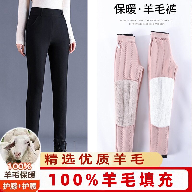 XL 100%羊毛小黑裤加厚休闲裤小直女士秋冬季保暖裤外穿显瘦