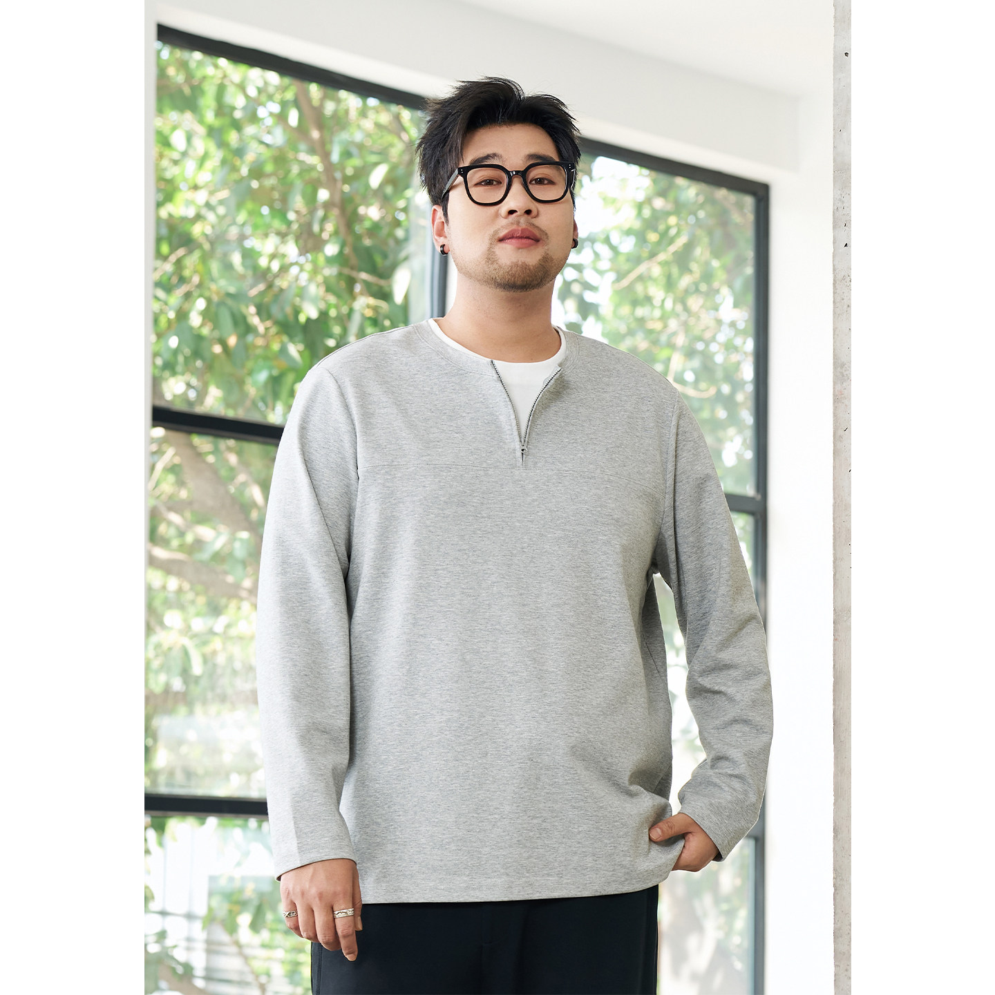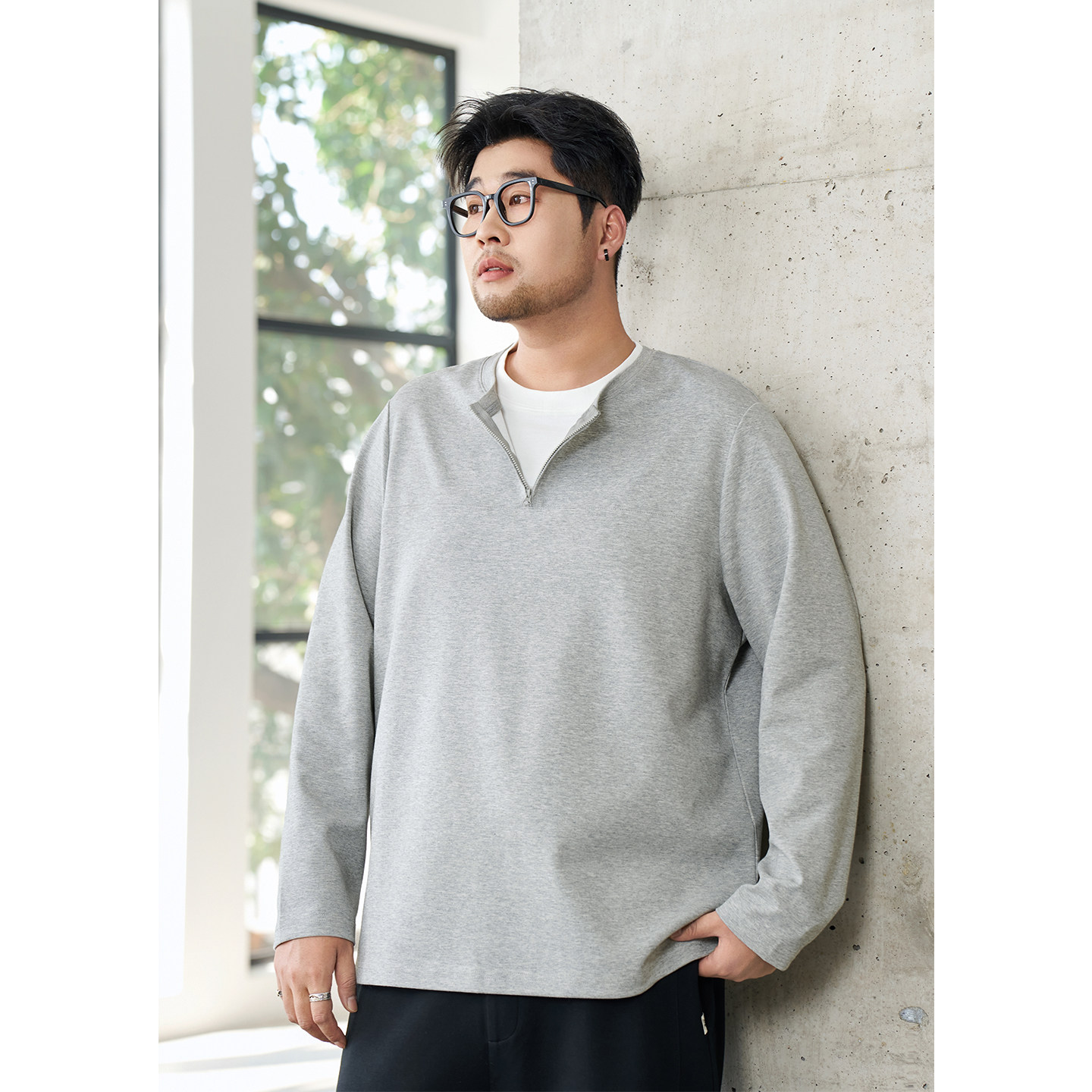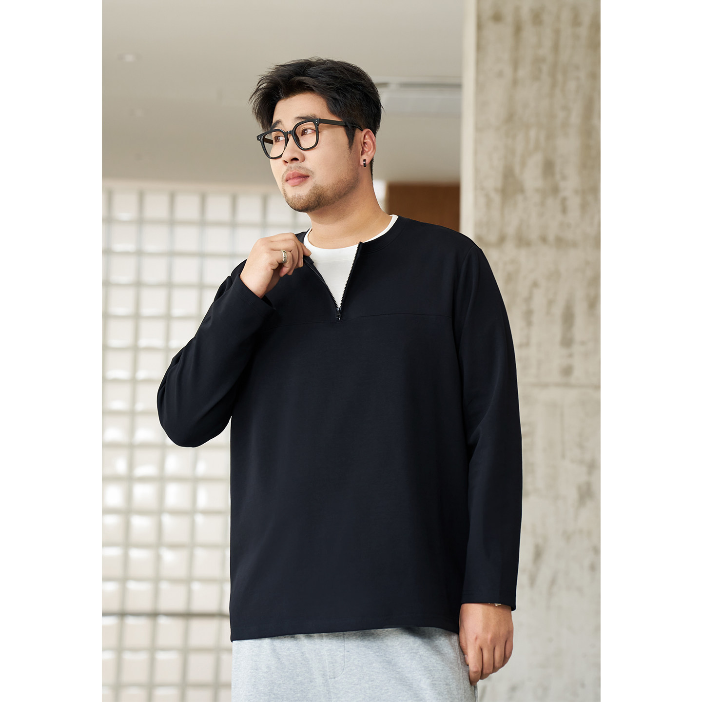 黑劲大码男装假两件卫衣2026年春季胖子加肥加大宽松半开襟上衣