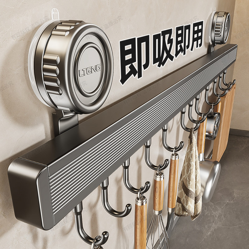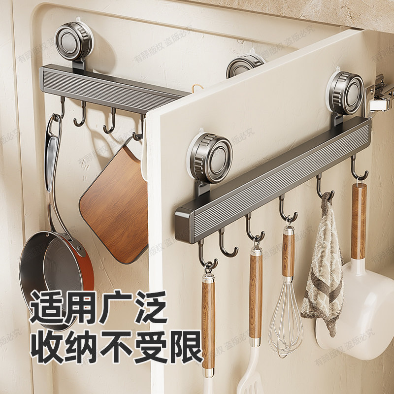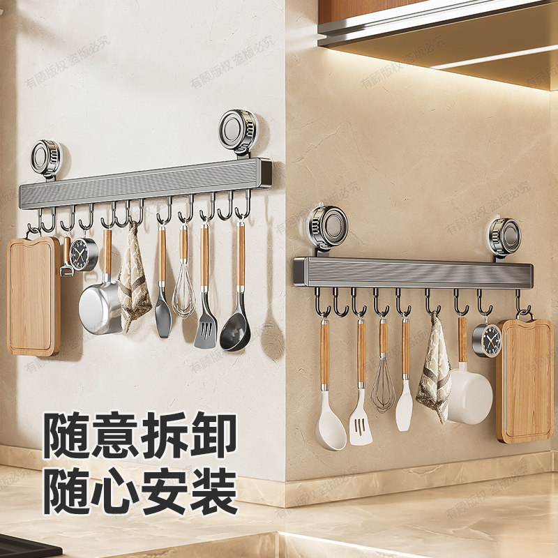吸盘厨房挂钩挂杆免打孔置物架锅铲勺子一体挂架壁挂式收纳架上墙