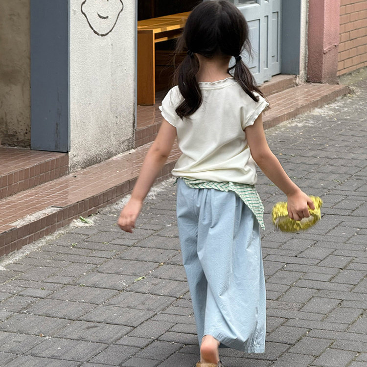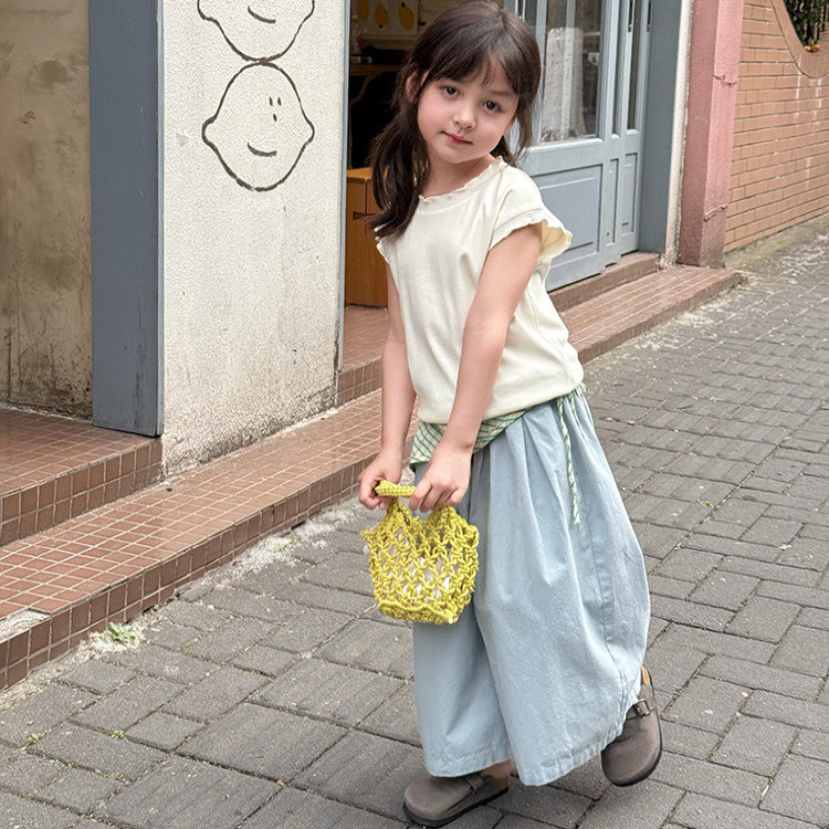 依依妈夏季儿童休闲度假风阔腿裤女童宝宝时髦宽松洋气压褶裤子潮