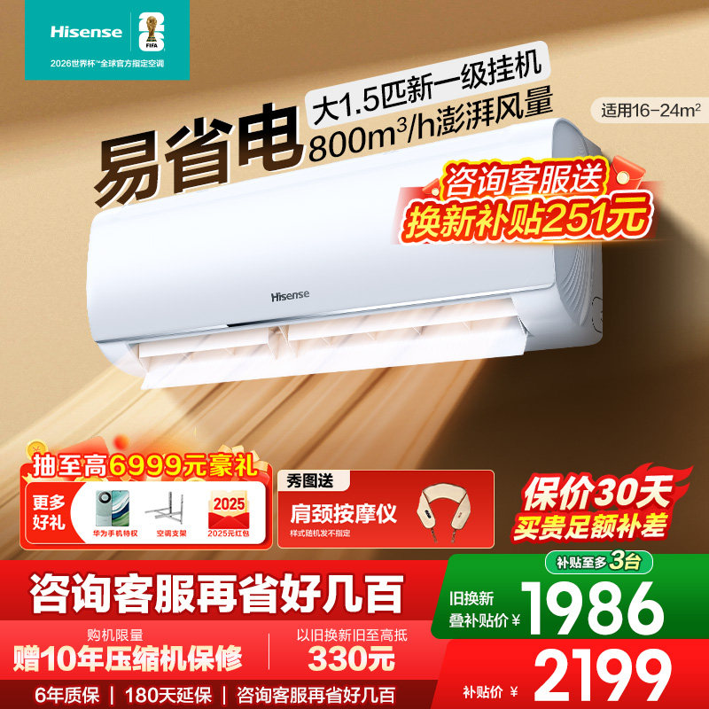 海信空调大1.5匹1匹易省电家用挂机一级以旧换新补贴官方旗舰店