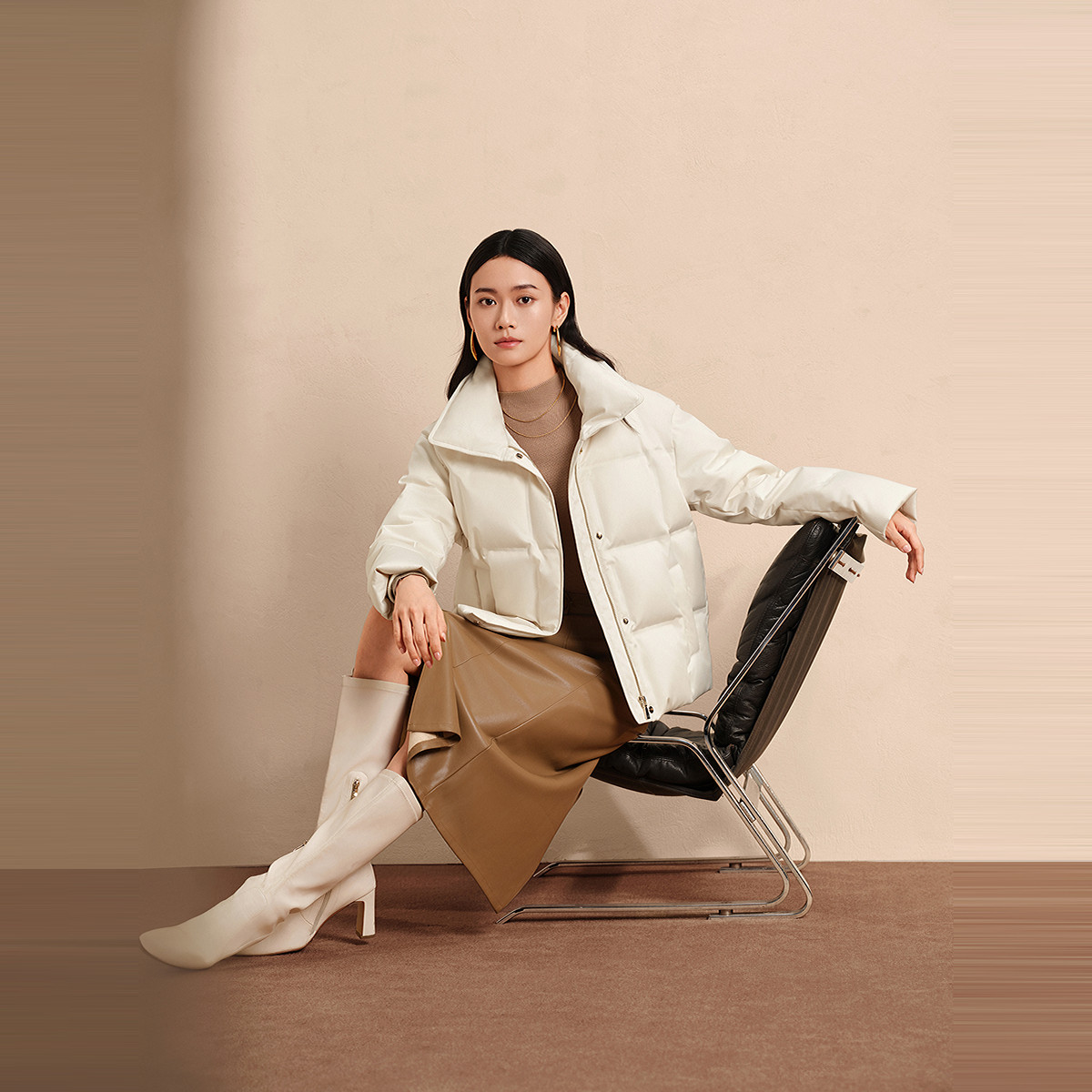 90鹅绒波司登2025年新款短款羽绒服女商务优雅品质翻领压胶不钻绒