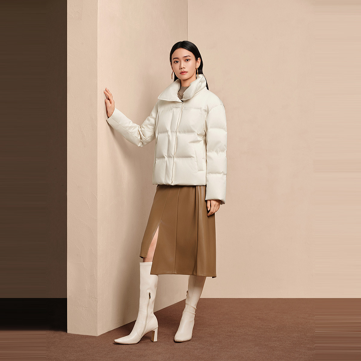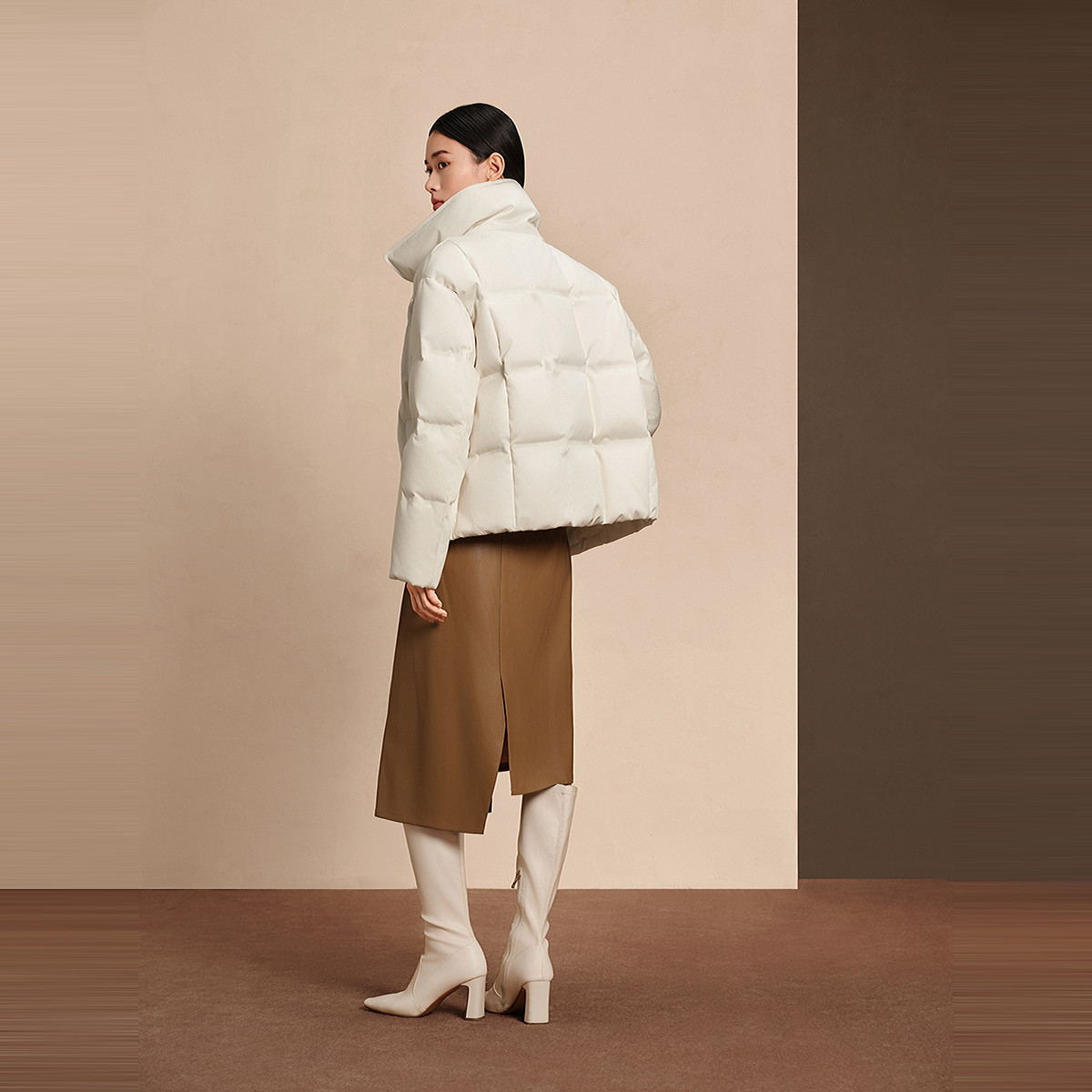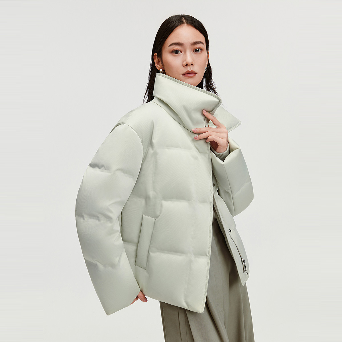 【鞠婧祎同款】鸭鸭2025年冬新款百搭短款女士纯色立领羽绒服外套