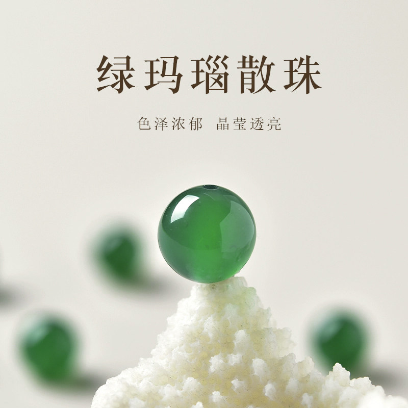 9A天然绿玛瑙散珠子碧玉散珠diy手串菠菜绿圆珠水晶绿色玉髓单