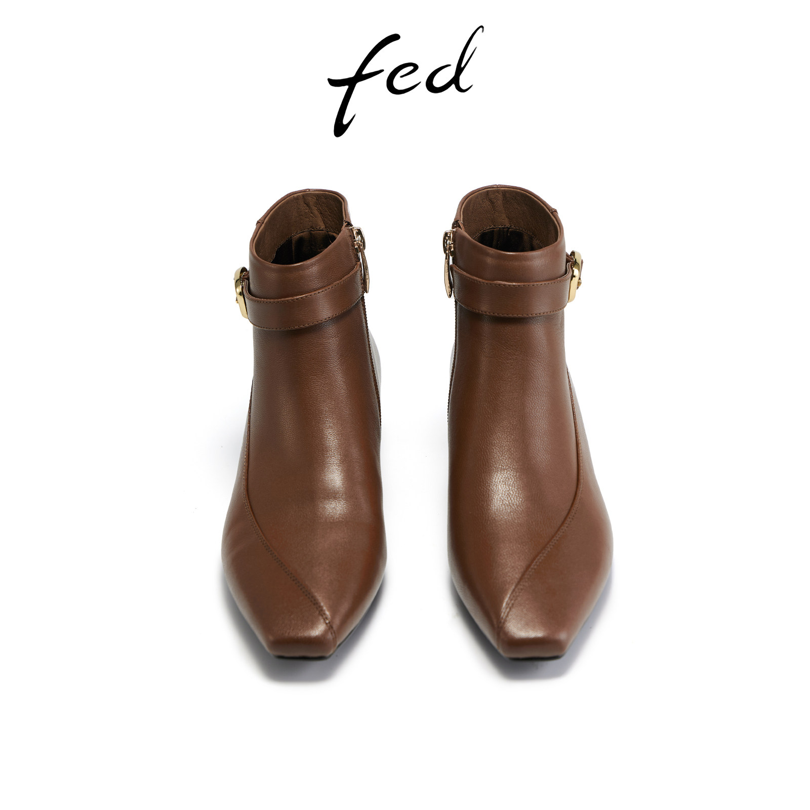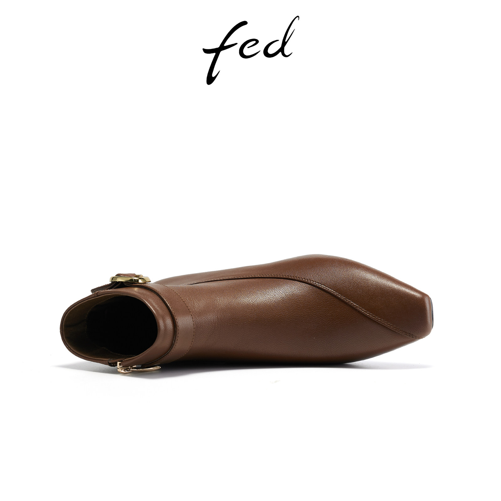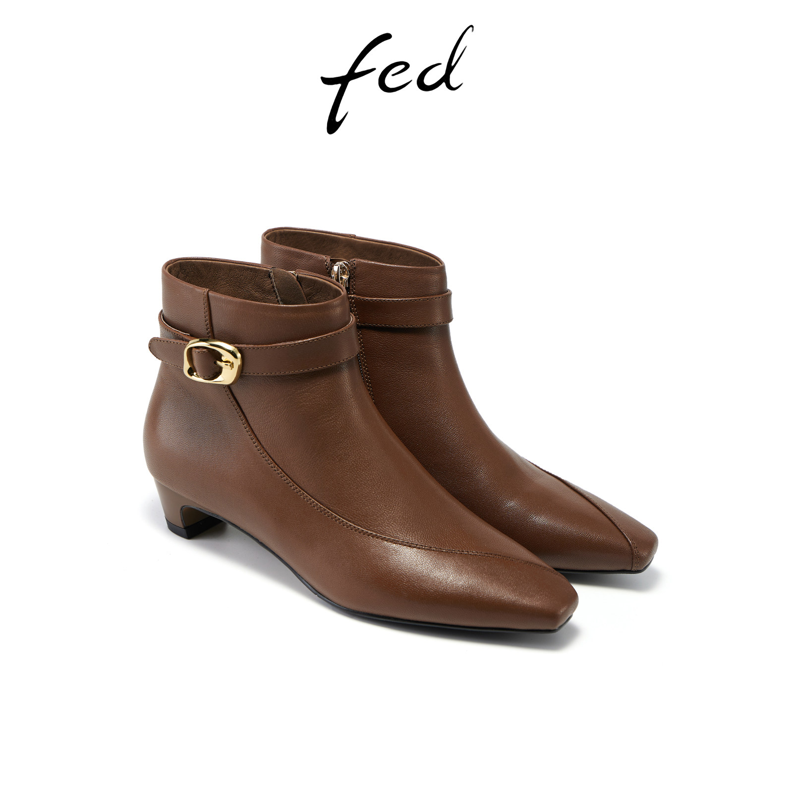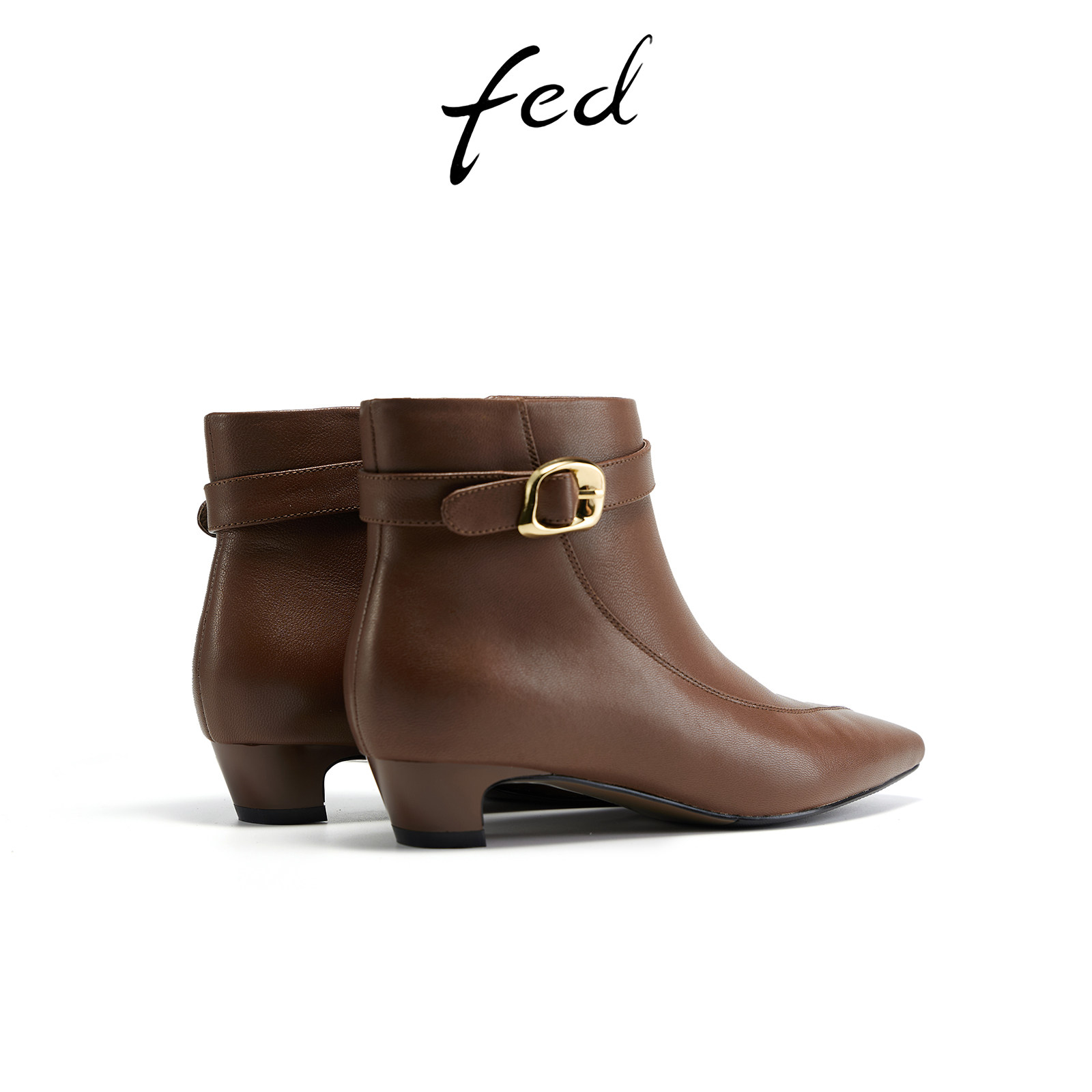 fed皮带扣时装靴冬季新款女靴粗跟短靴复古真皮靴女S1009-CAB016