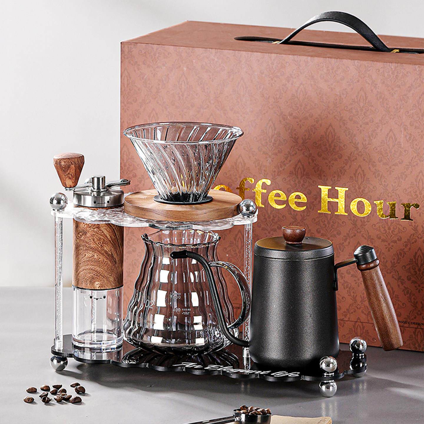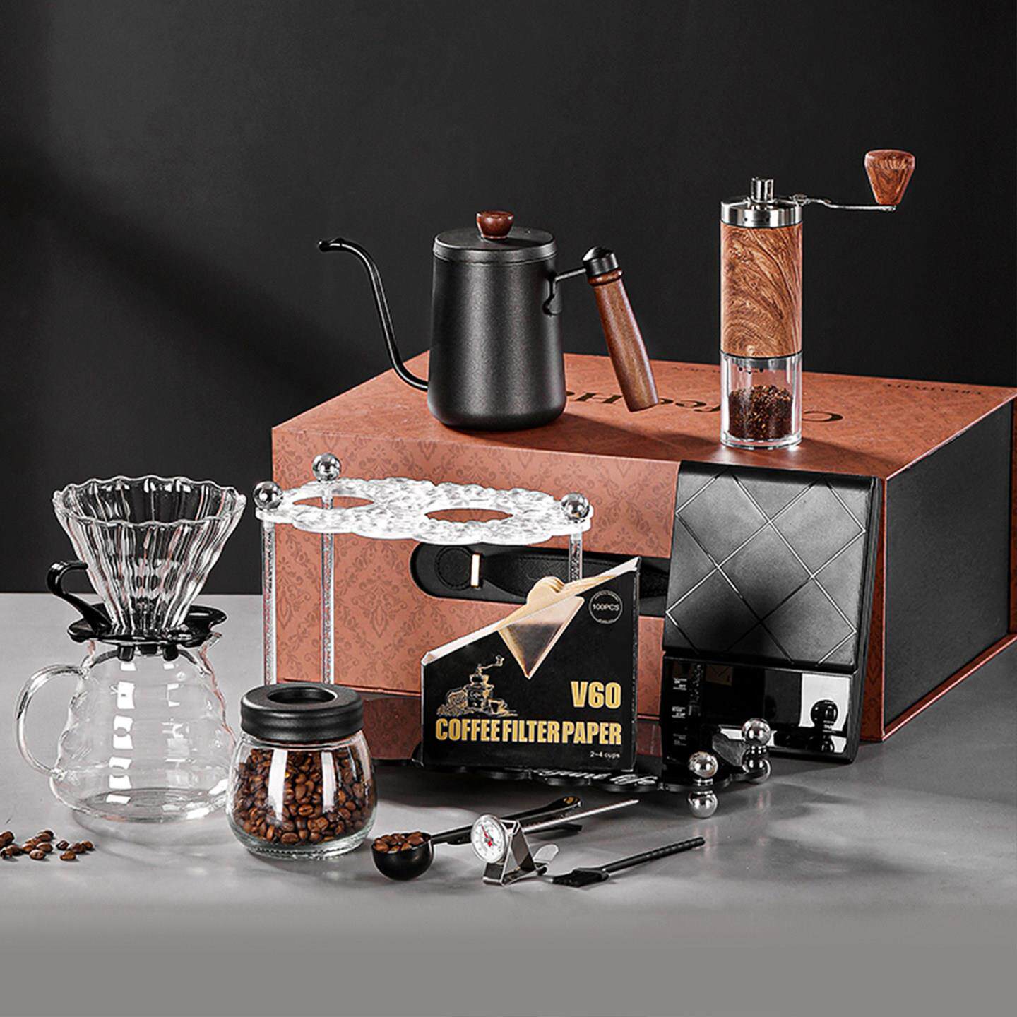 鹏音伴专业手冲咖啡壶礼盒套组高级手摇研磨机一体家用小型工具全套器具盖布