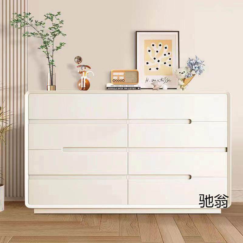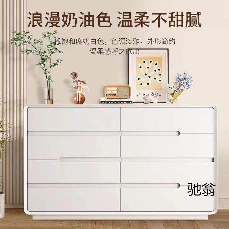全实木斗柜奶油风客厅收纳抽屉柜卧室床头柜意式免安装五六八斗柜