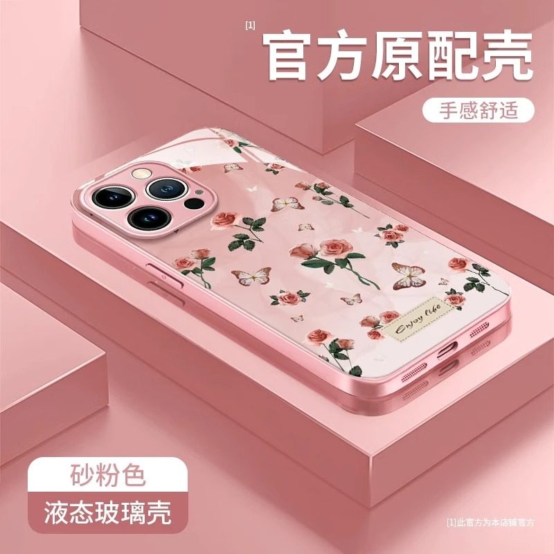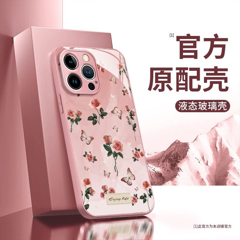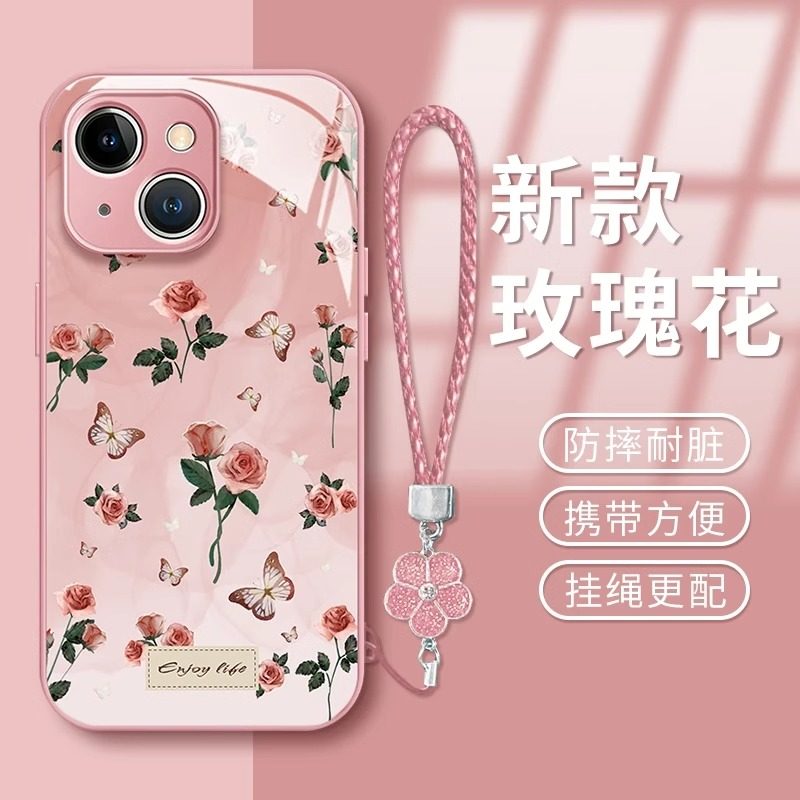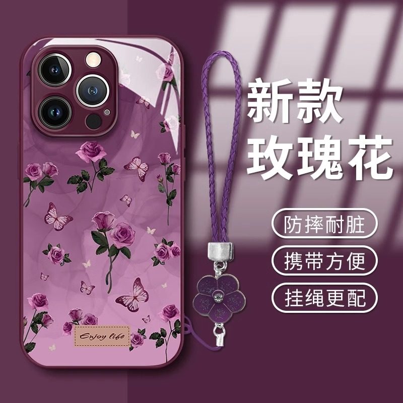 优雅紫玫瑰适用于苹果16promax手机壳iPhone15promax新款苹果14promax高级苹果13promax玻璃苹果12/11简约女