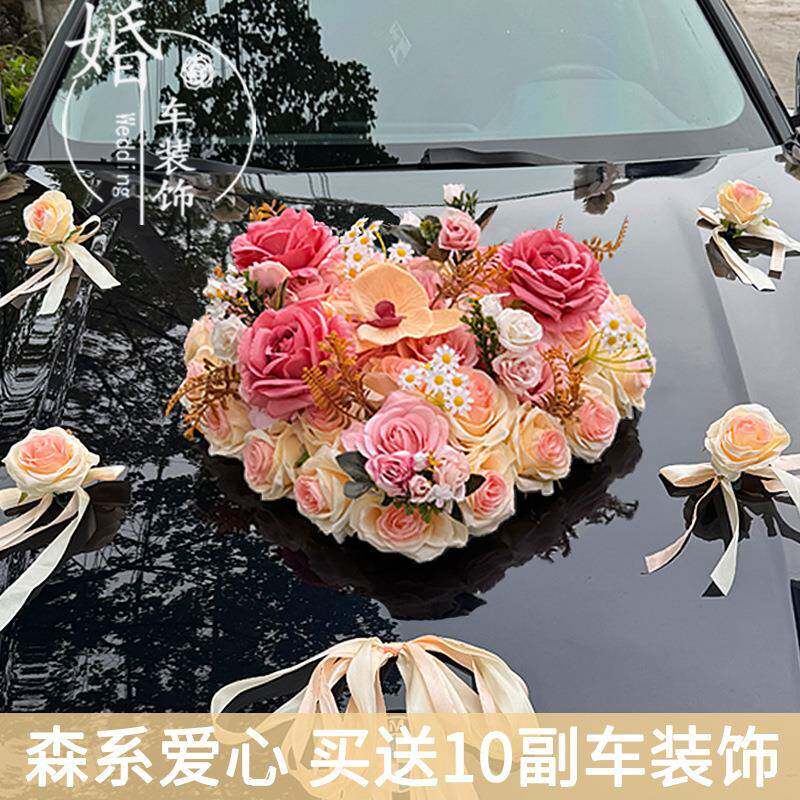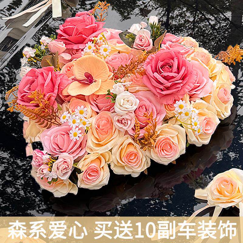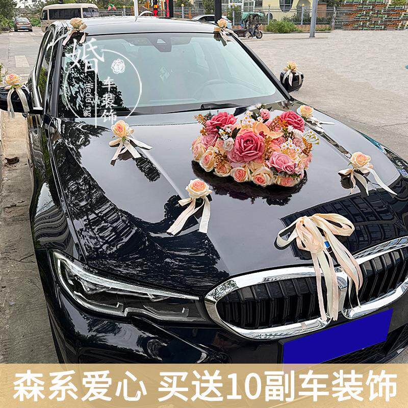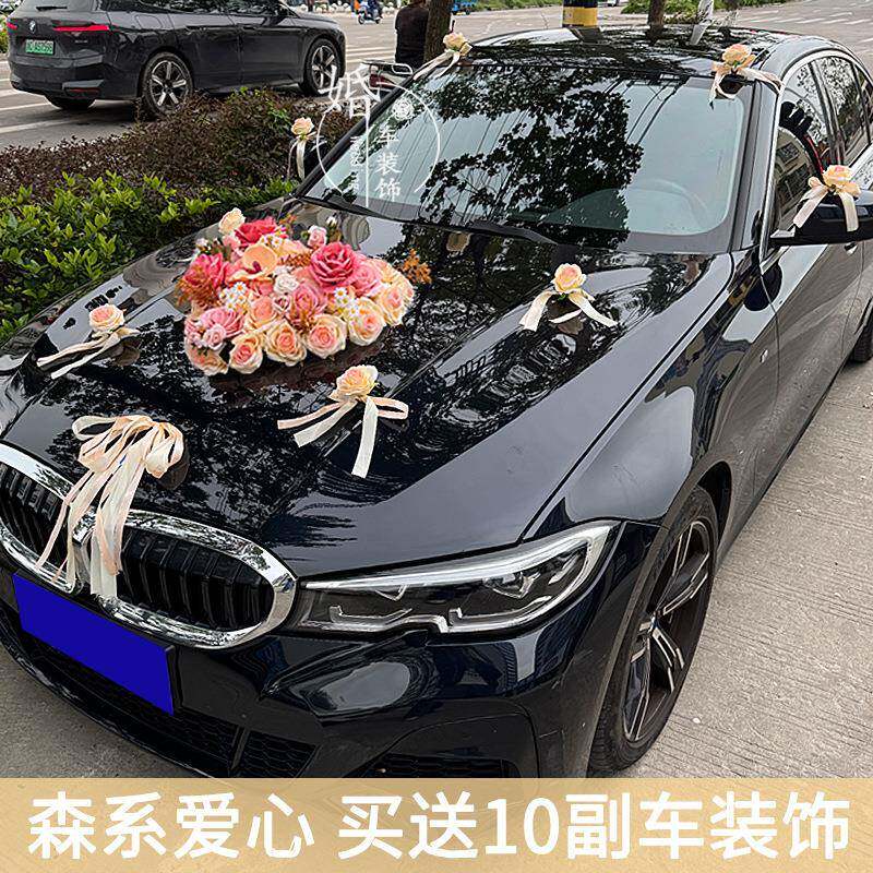 新款森系婚车装饰车头花主车花车结婚车队拉花头车花吸盘全套布置