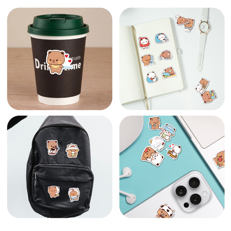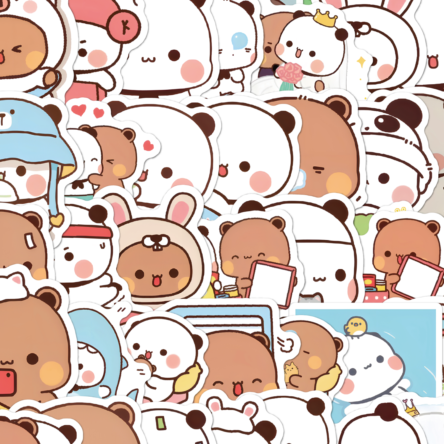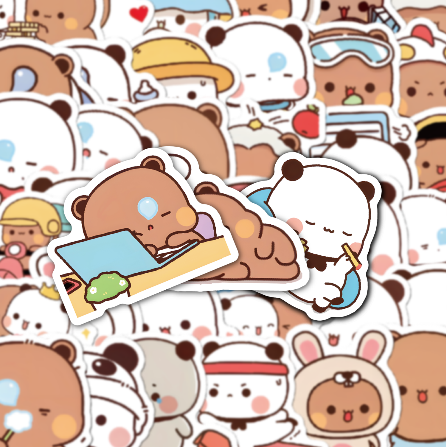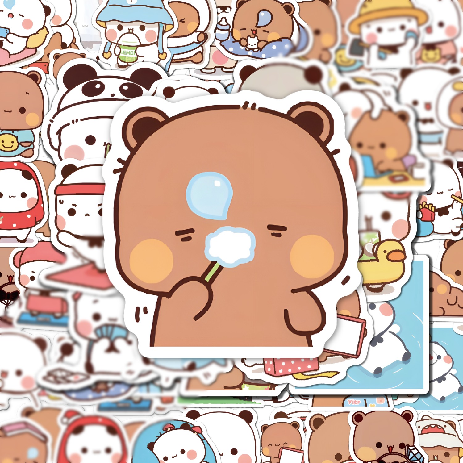 一二布布贴纸可爱卡通小熊猫情侣手机手账咕卡打包素材行李箱diy贴画