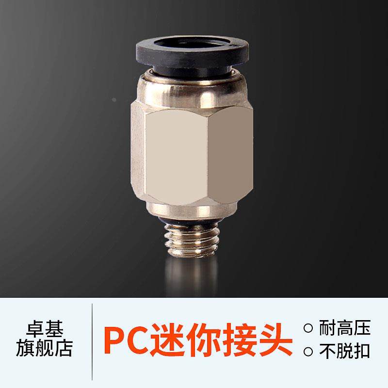 气动元件气管微型迷你接头外六角螺纹直通细牙PC4/6mm-M3/M5/1分