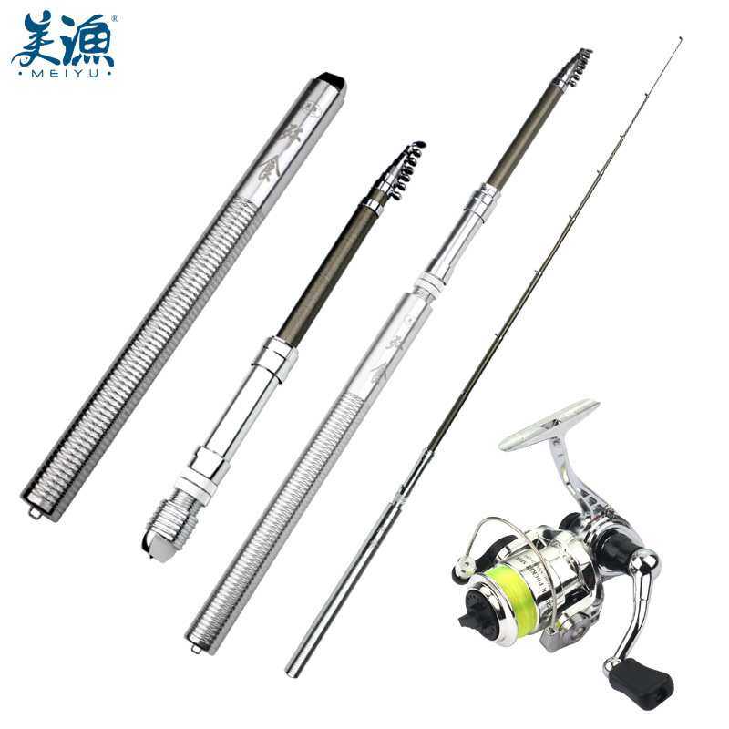 美渔铝合金便携野营户外求生钓鱼工具迷你钓杆套装船矶竿1.6米J10