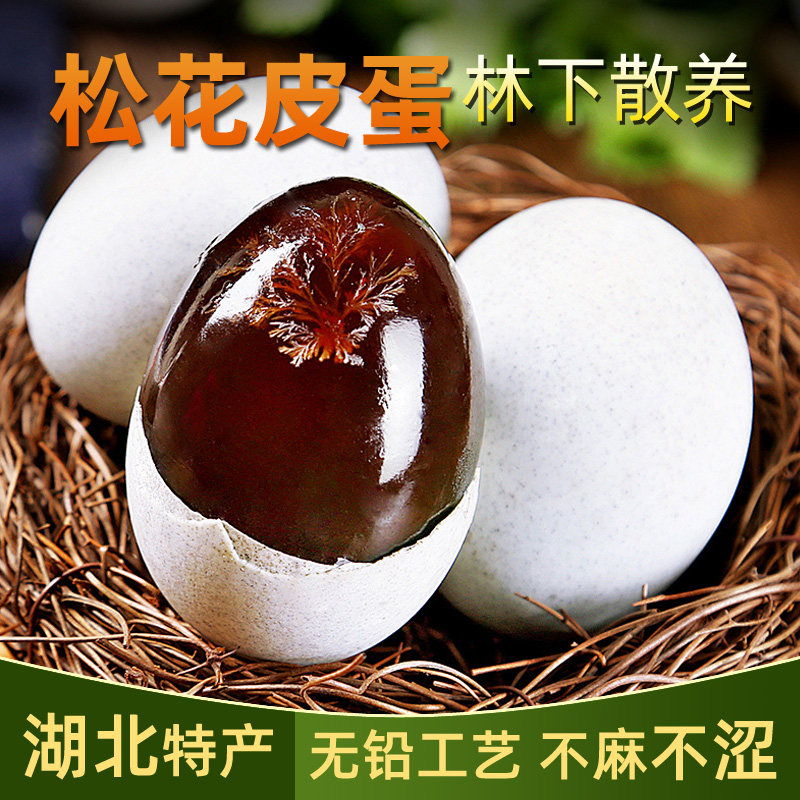 皮蛋正宗湖北麻城无铅10枚50-60g农场直发不麻不涩溏心松花蛋批发