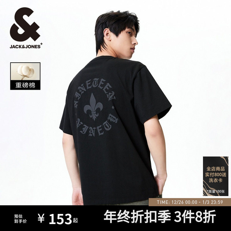 杰克琼斯男装春季潮T恤百搭休闲情侣款立体刺绣舒适罗纹圆领宽松