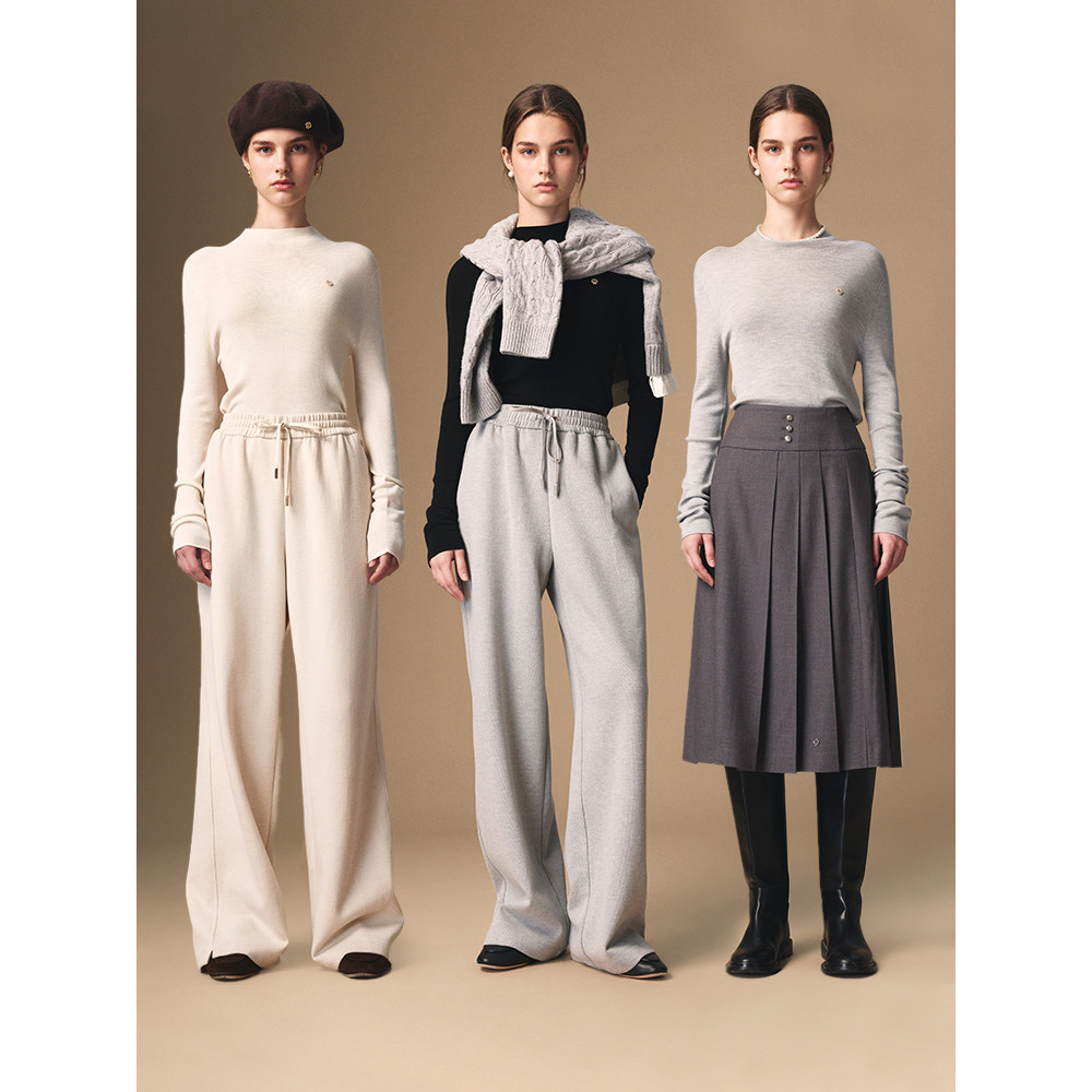 三福长袖上衣2025新款秋季圆领修身针织衫简约纯色内搭打底衫女装