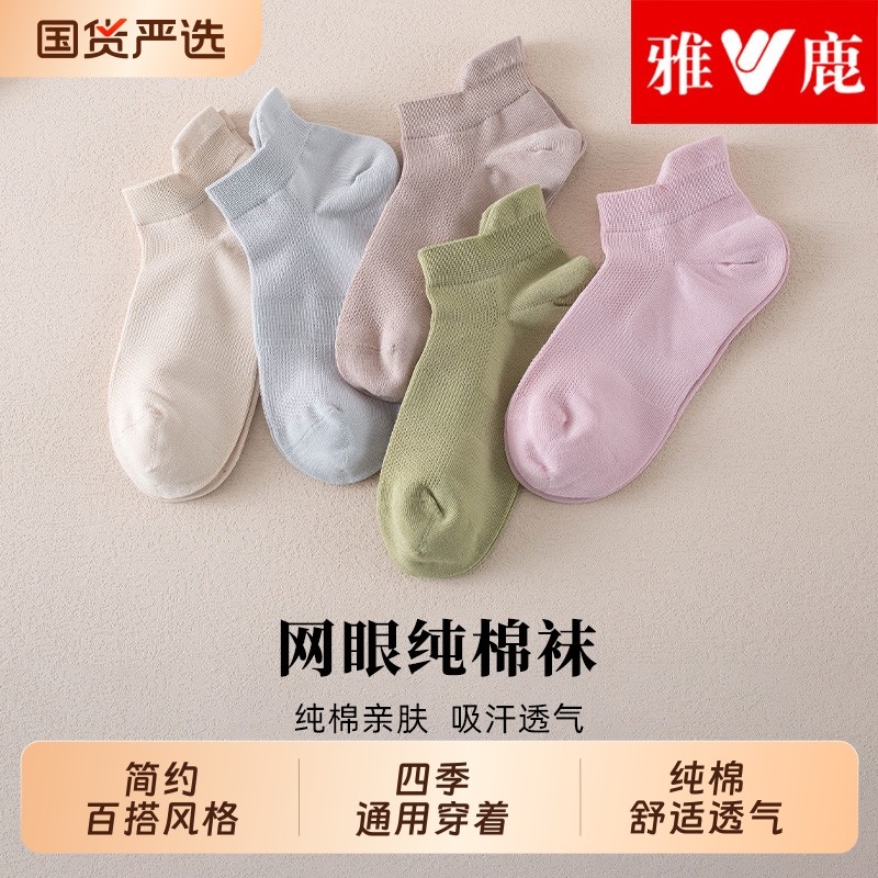 雅鹿袜子女士短袜春夏季纯棉吸汗夏天透气无骨低帮浅口女短筒袜