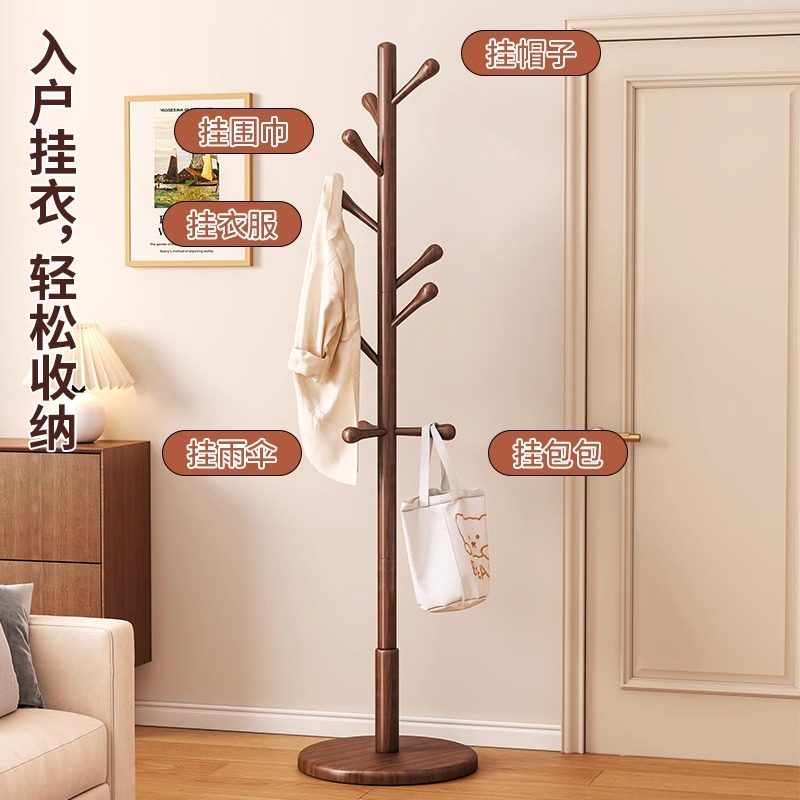 实木衣架落地衣帽架家用卧室立式衣杆架简易室内玄关收纳挂包架子