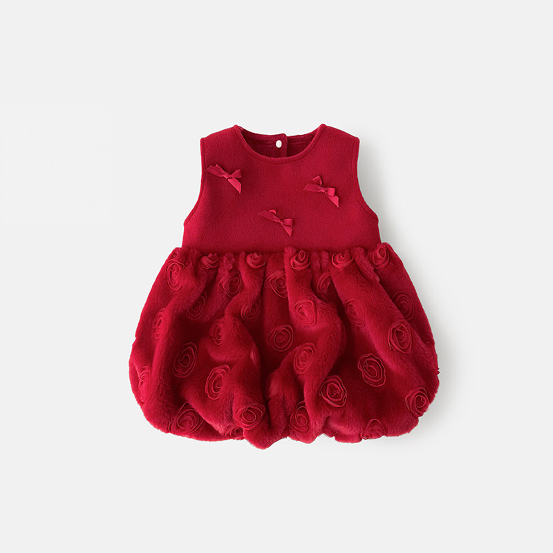 [保暖加厚]女童背心裙中国风裙子宝宝红色连衣裙小儿童冬季拜年服