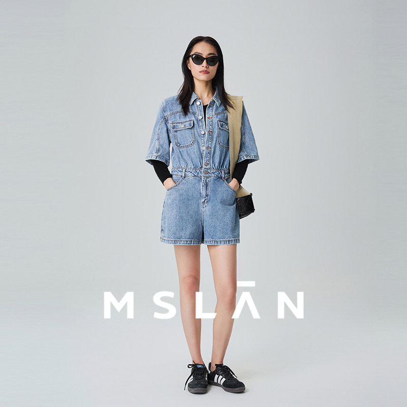 MSLAN美式牛仔连体裤 26春松弛感收腰透气工装裤