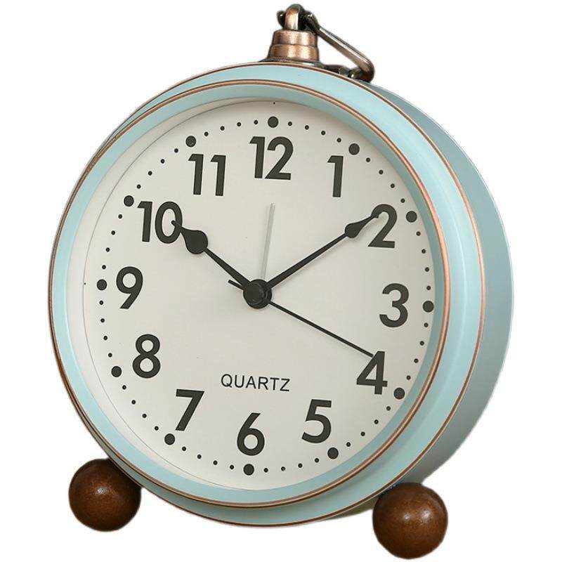 美式小台钟闹钟表复古床头闹铃静音老式轻奢卧室宿舍桌面摆件新款
