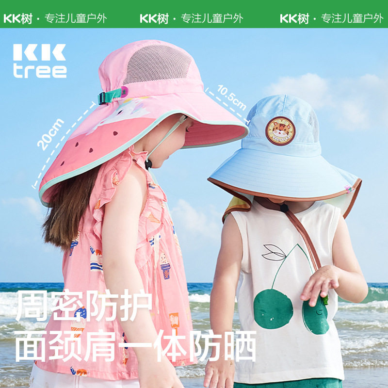 KK树大帽檐儿童防晒帽夏季宝宝遮阳帽男童女童太阳帽防紫外线沙滩