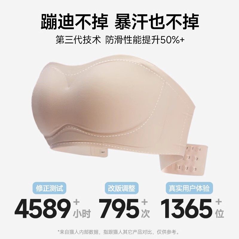 猫人无肩带内衣女隐形无痕美背小胸显大聚拢防滑抹胸裹胸外扩文胸