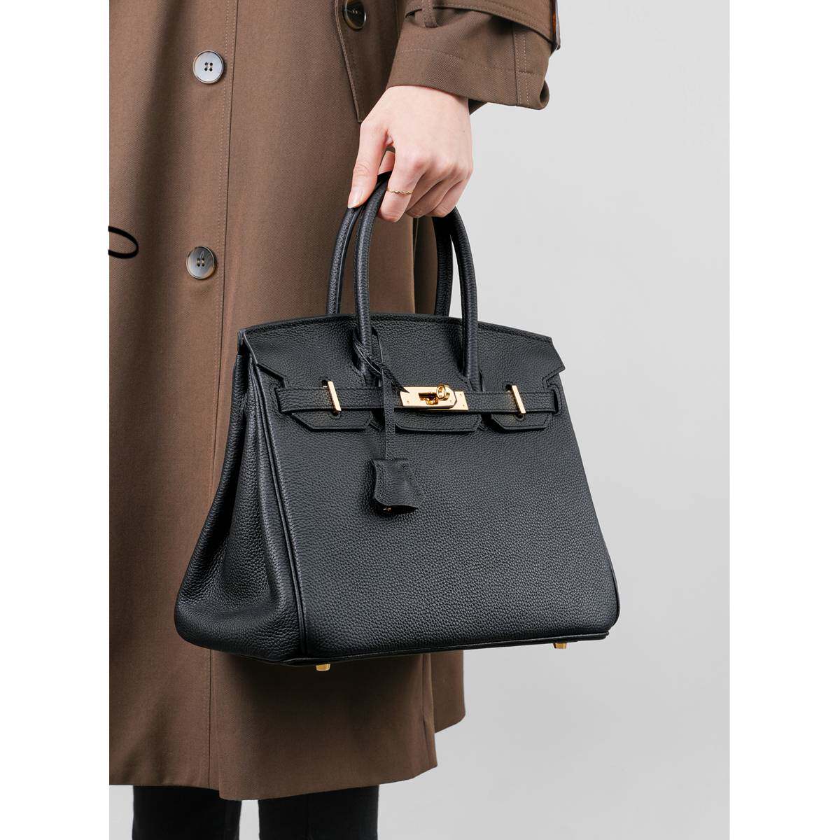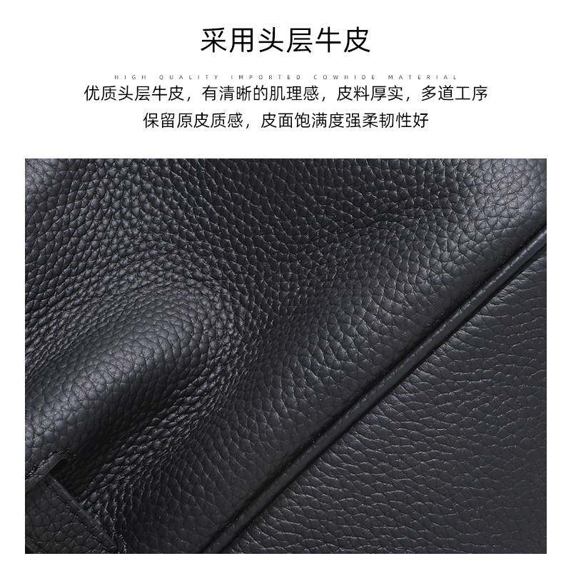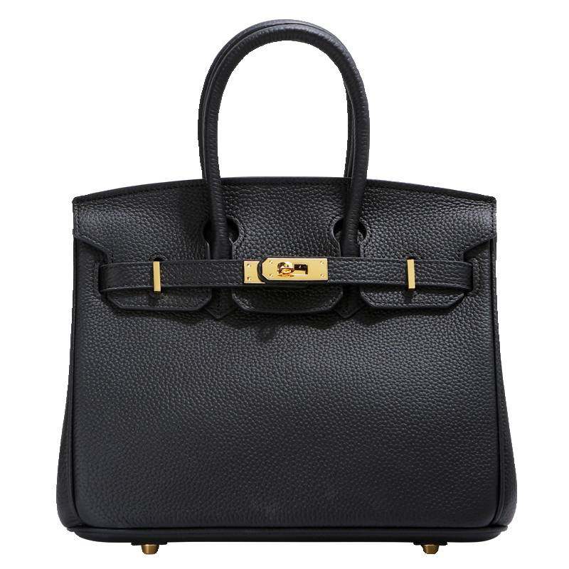 头层牛皮铂金包真皮女包大容量手提包女高级感荔枝纹黑色高品质