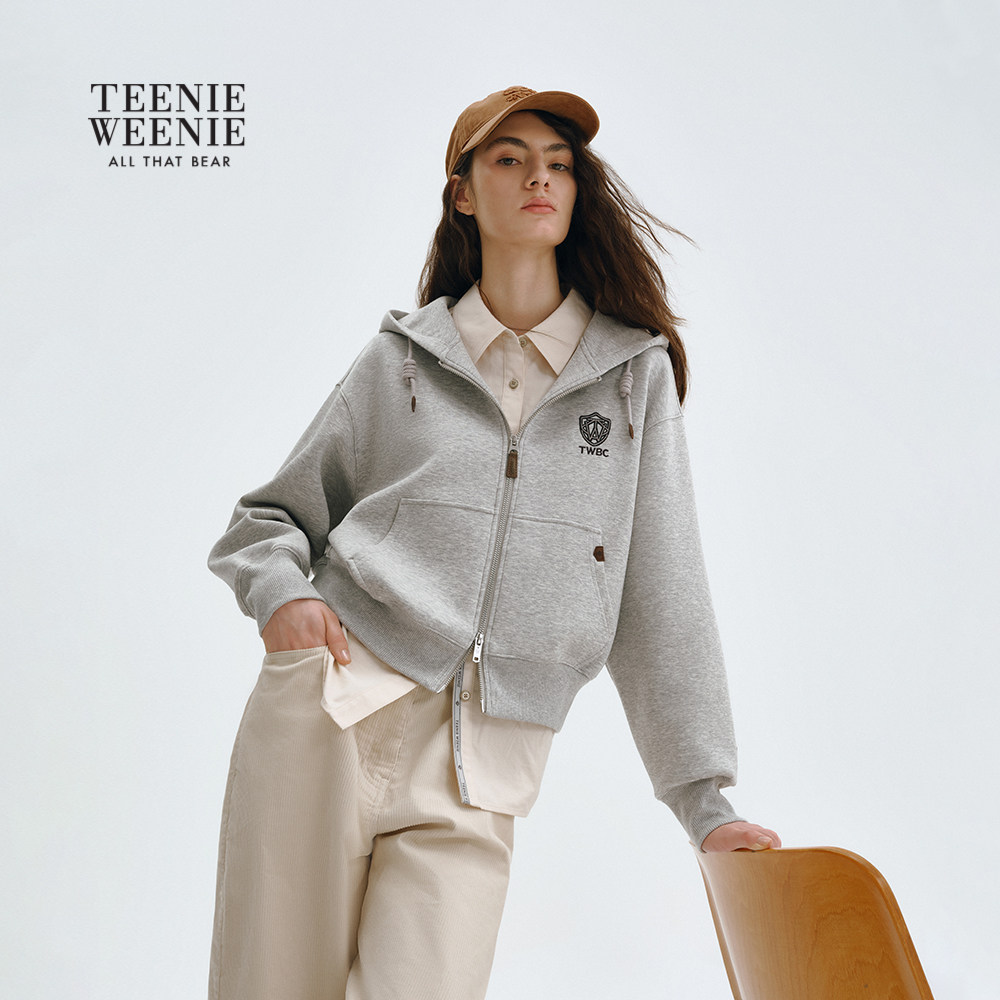 TeenieWeenie小熊女装卫衣秋冬季简约时尚休闲舒适连帽开衫外套