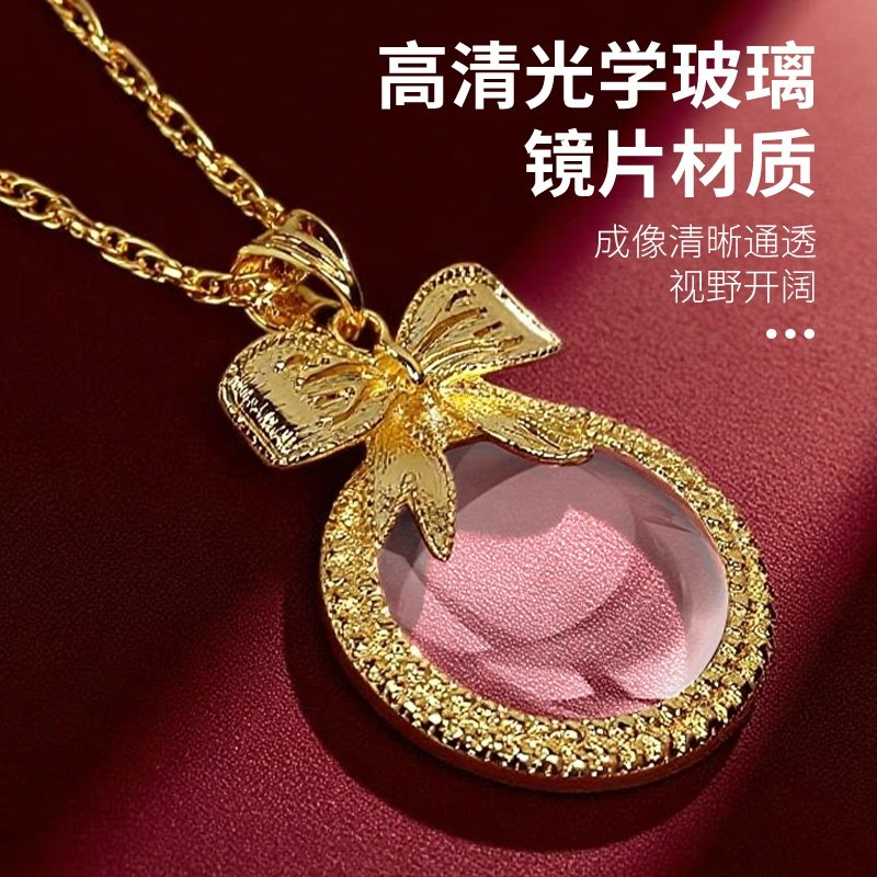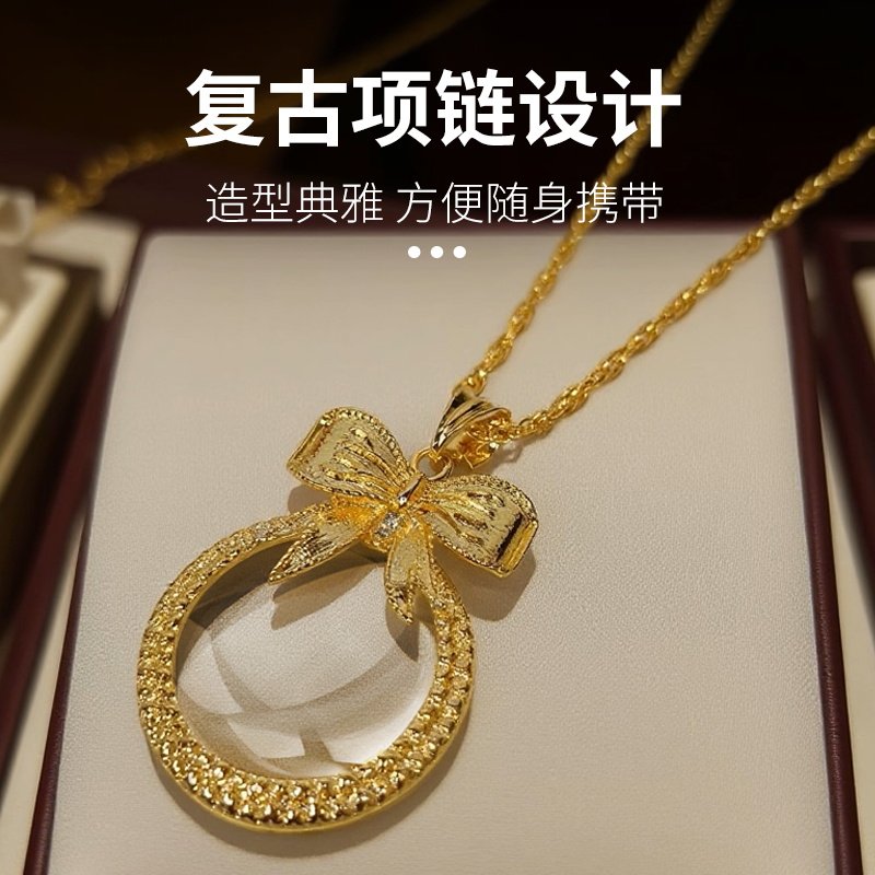 复古项链放大镜欧美时尚个性项链创意复古蝴蝶结吊坠项链饰品潮