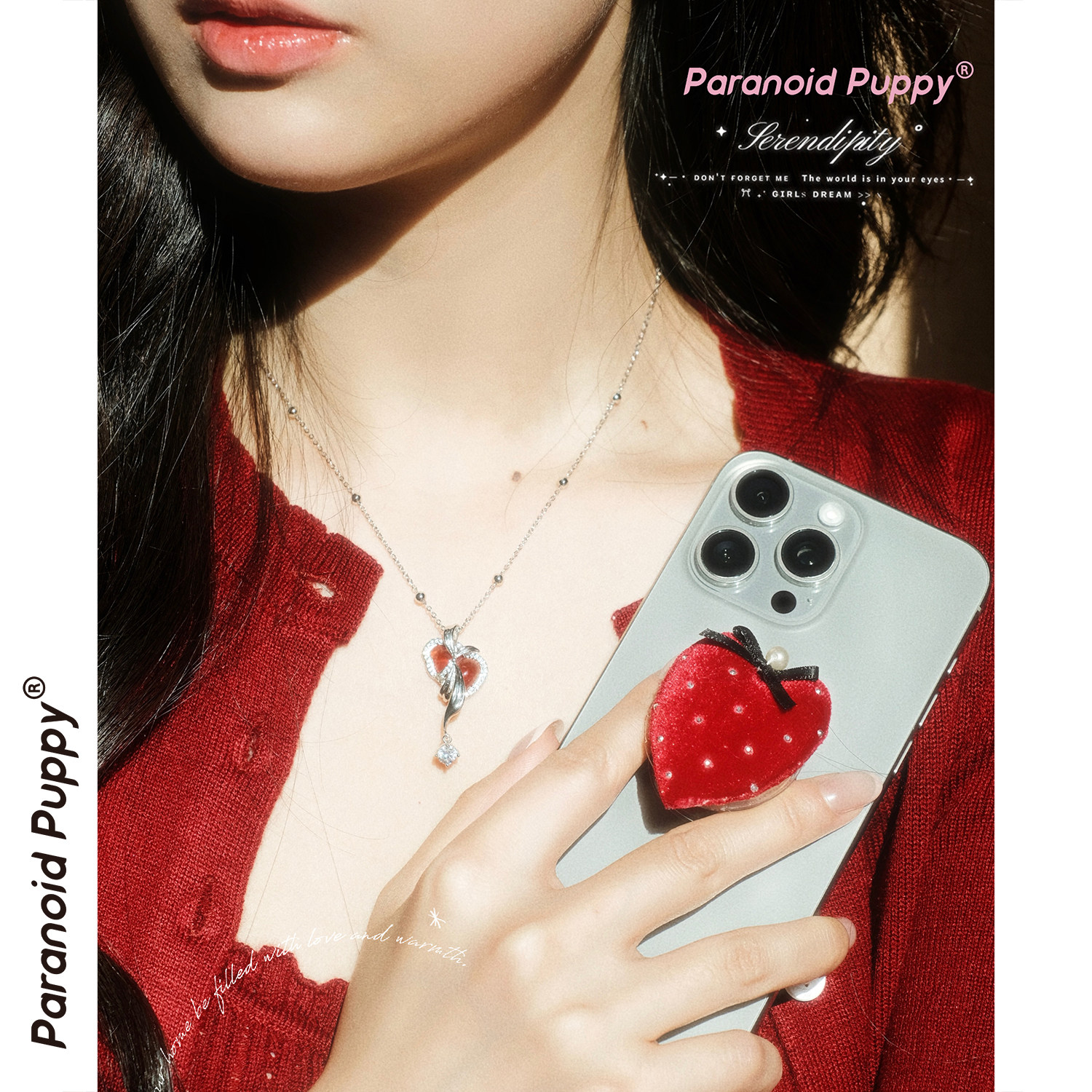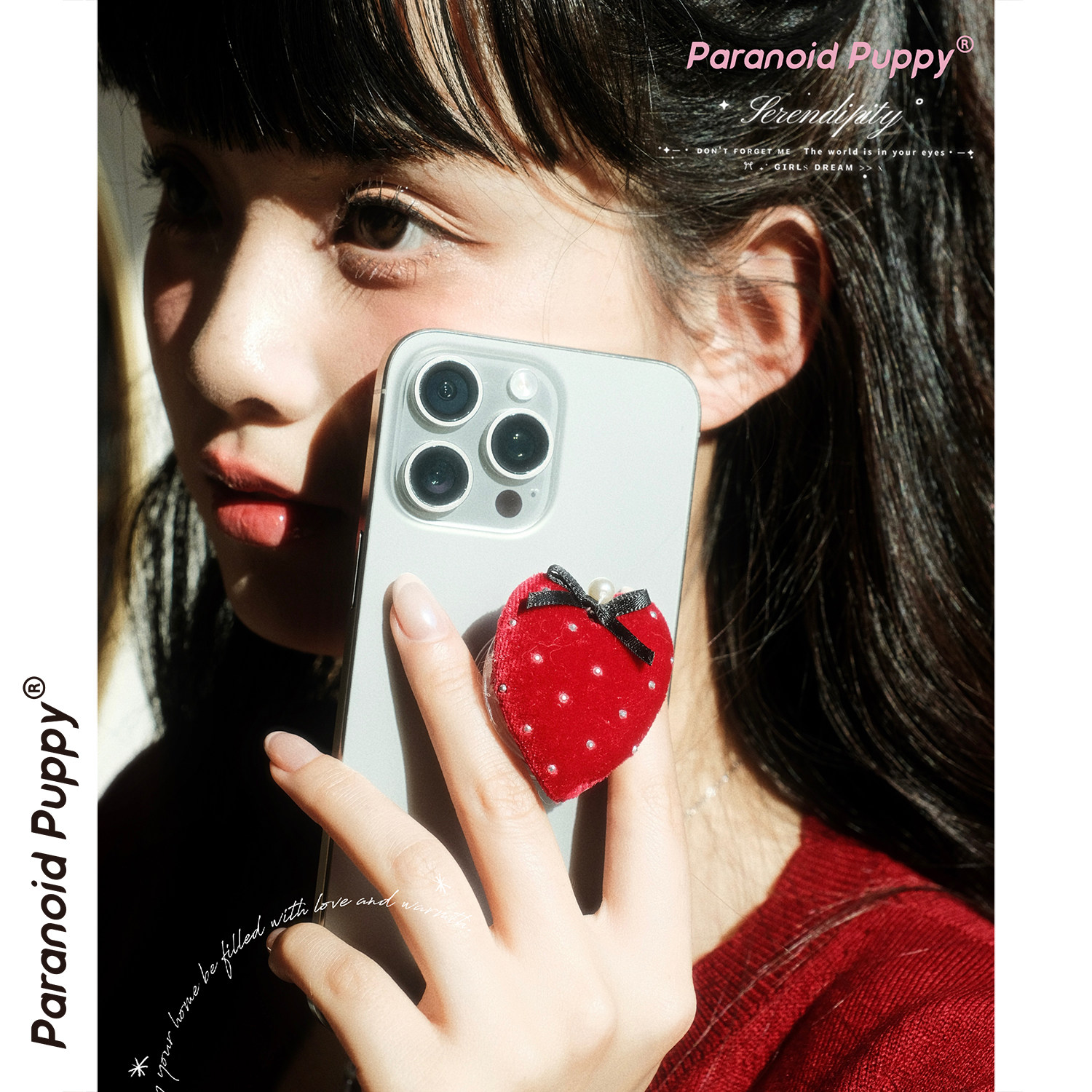 现货·原创红色miu系手机气囊支架复古红丝绒蝴蝶结配饰时尚点缀