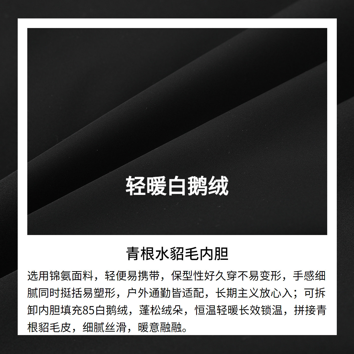 [青根水貂毛]SATCHI沙驰男装男士皮草春季新款白鹅绒连帽外套
