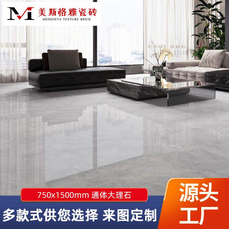 客厅地砖通体大理石大板瓷砖750x1500简约现代别墅新款地板砖磁砖