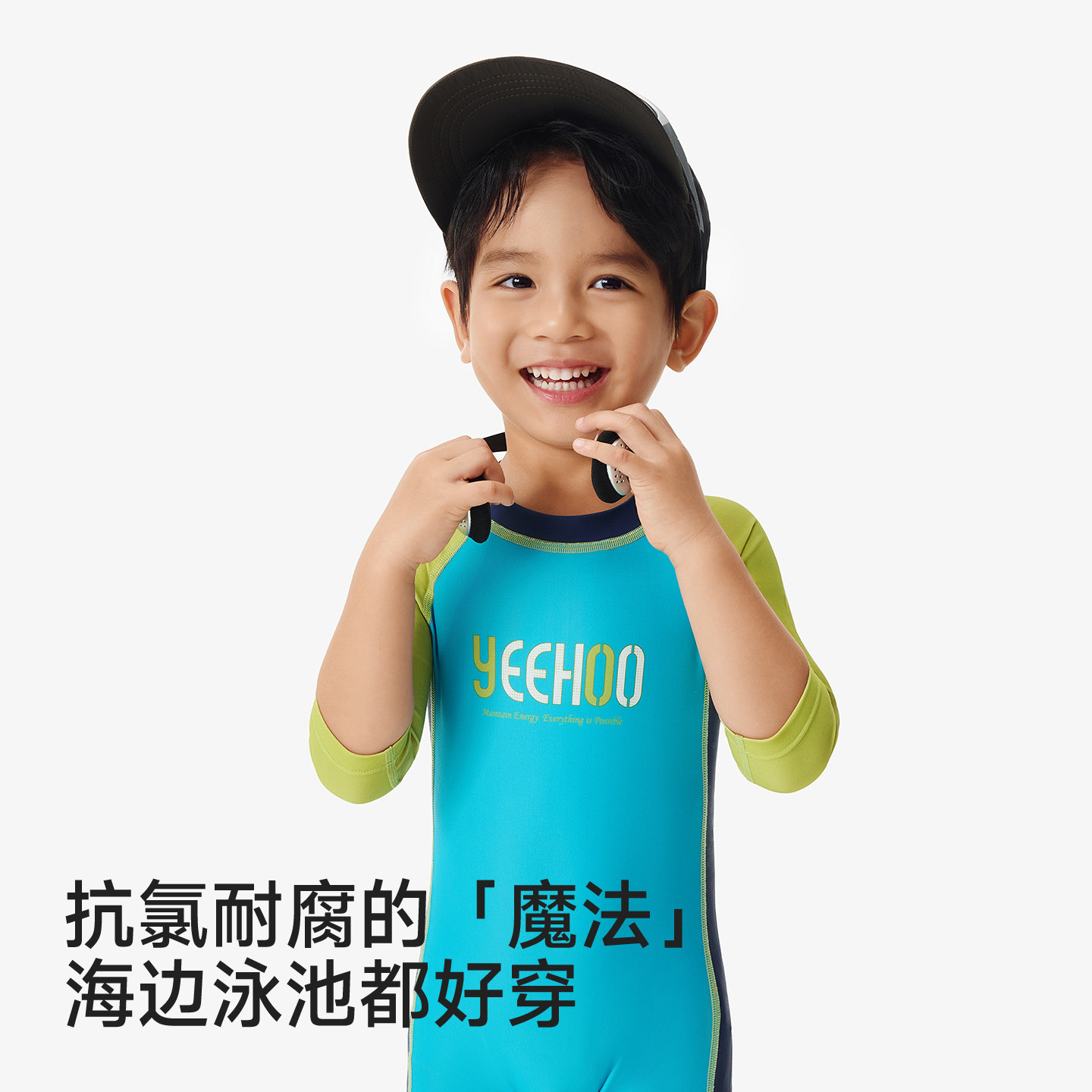 英氏儿童连体泳衣防晒UPF50+宝宝短袖泳装男童女童中大童夏季新款