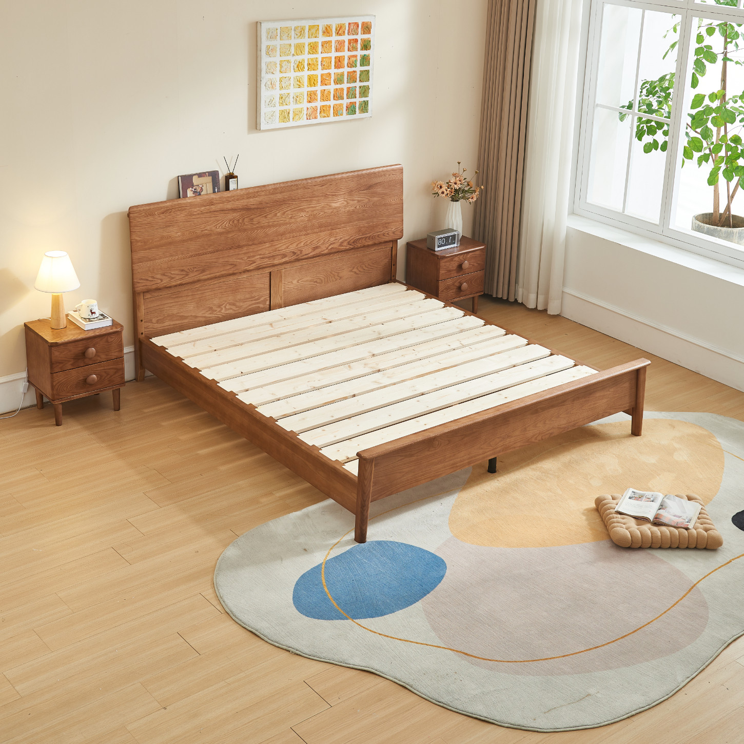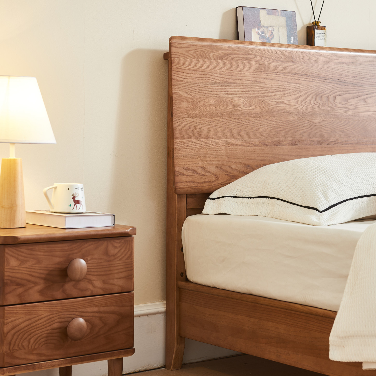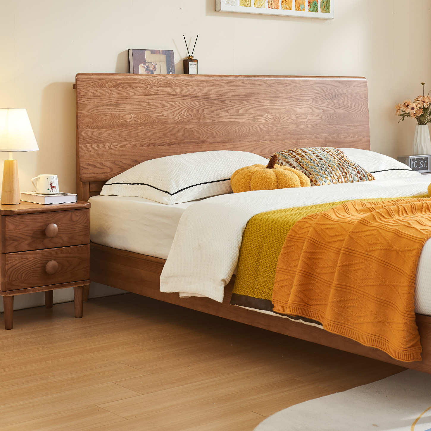 优尚雅轩白蜡木实木床家具简约大板床主卧1.8米婚床白蜡木实木床