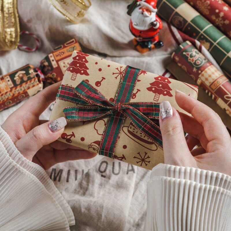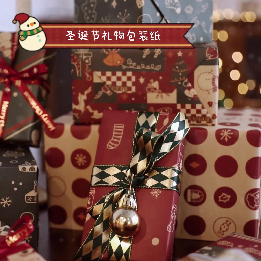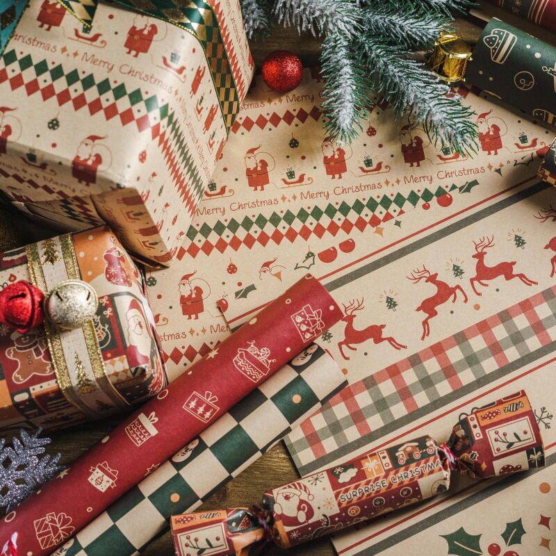 圣诞礼物包装纸高级感幼儿园儿童小学生圣诞节平安夜零食糖果礼盒礼品纸大尺寸打包纸复古牛皮纸礼物纸大纸张