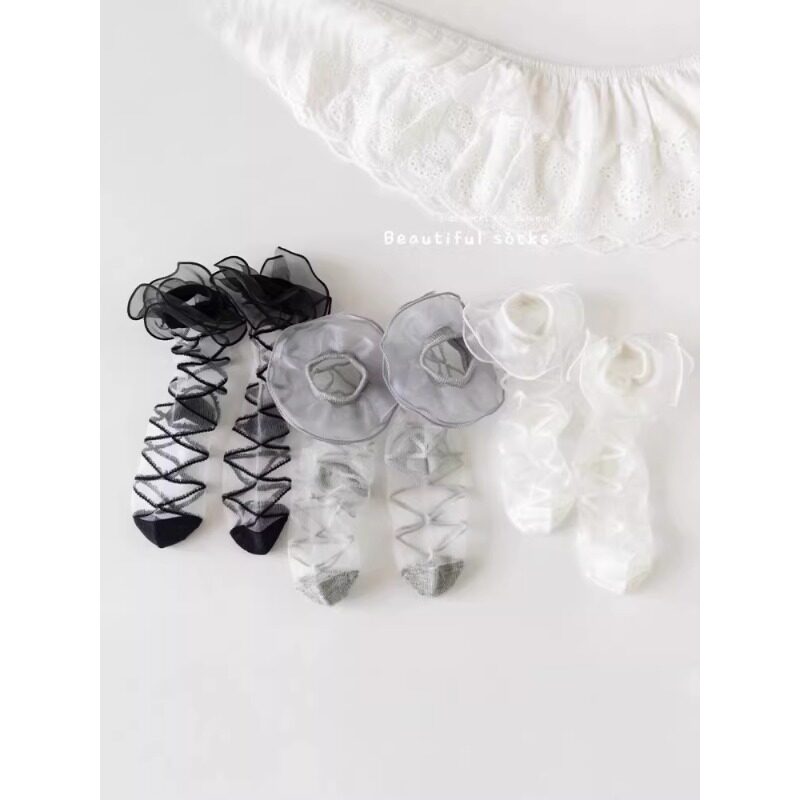 女童袜子夏季薄款水晶丝袜儿童公主花边中筒袜无骨玻璃冰丝网眼袜