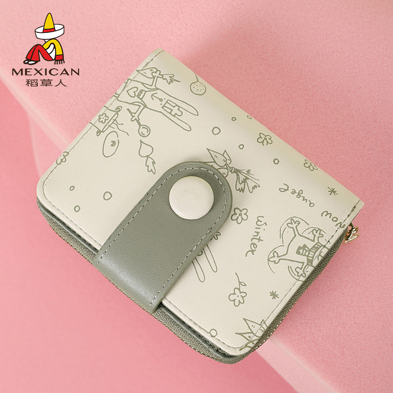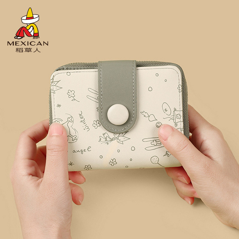 稻草人钱包女小众设计女生皮夹高级感银包钱夹可爱真皮零钱包卡包