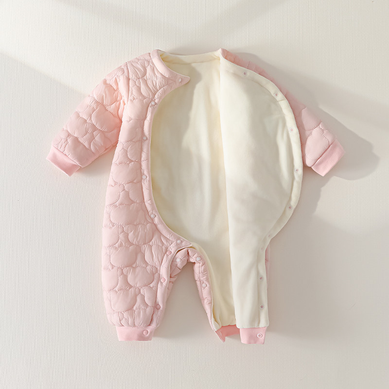 贝肽斯婴儿薄夹棉连体衣冬装外出新生幼儿宝宝衣服保暖空气棉睡衣